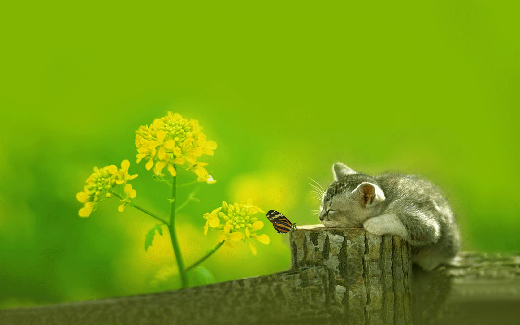 夏天自然草地树林中小猫电脑壁纸免费下载