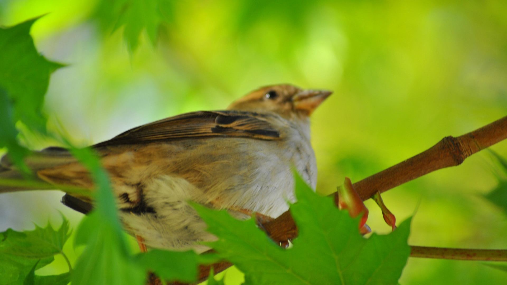 春天树枝繁花盛开鸟儿嬉戏免费电脑壁纸下载