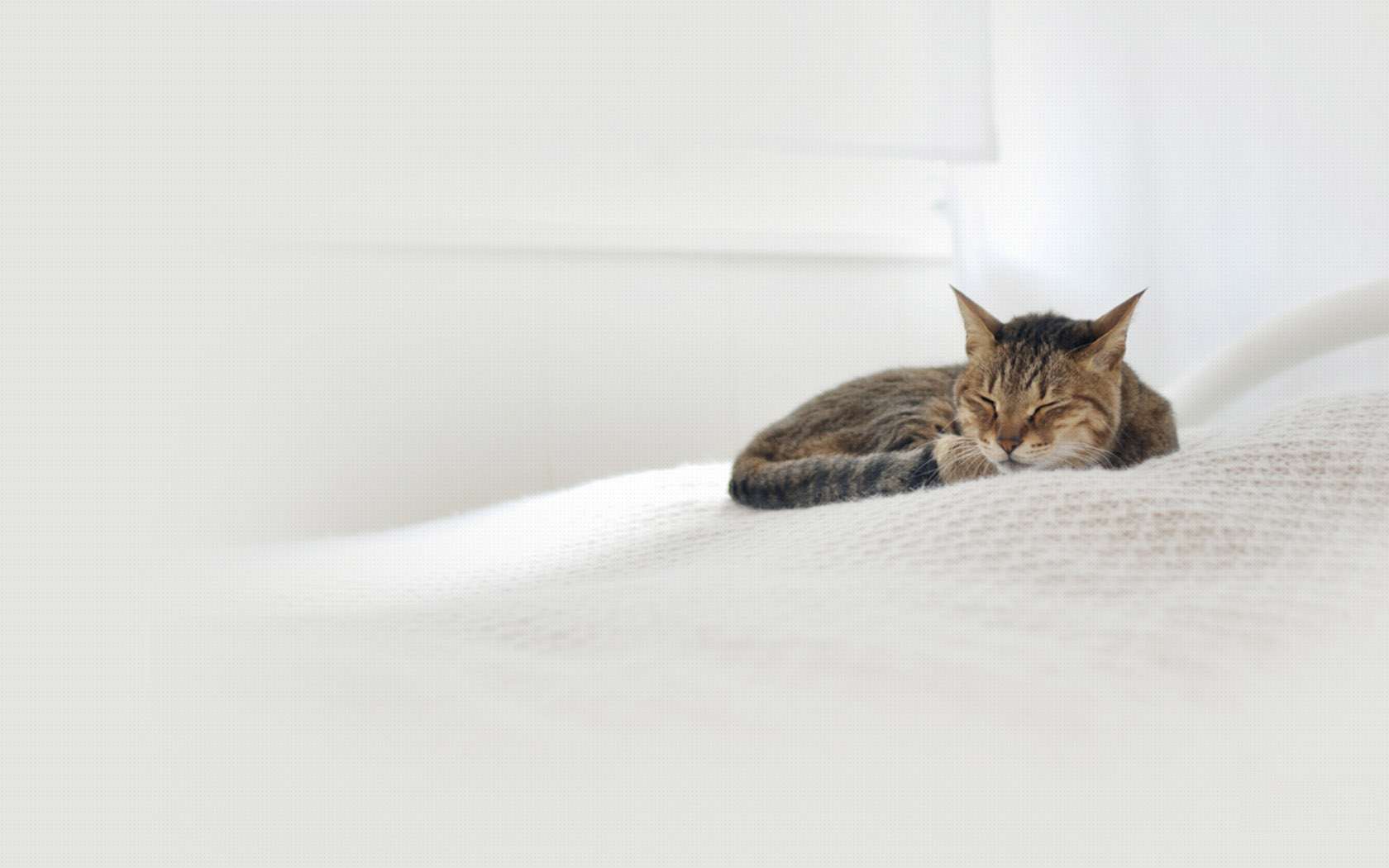 可爱小猫捂被子睡肚子上的免费电脑壁纸下载