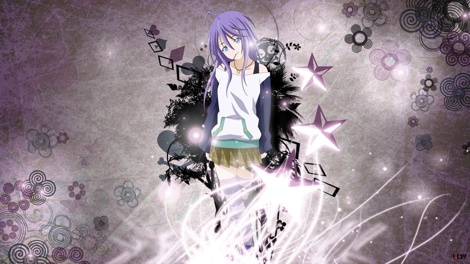 报纸墙背景动漫女孩马尾蝴蝶结风格免费电脑壁纸下载