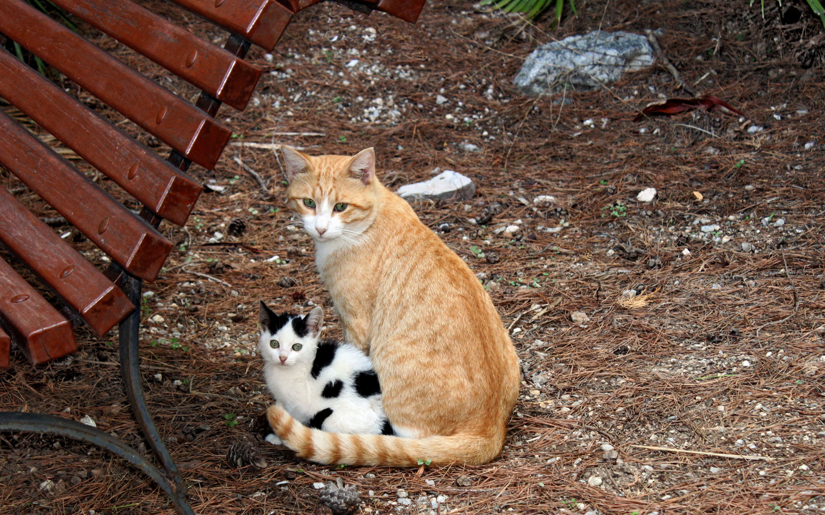 可爱小猫与妈妈在空心树桩对话动物桌面壁纸免费下载