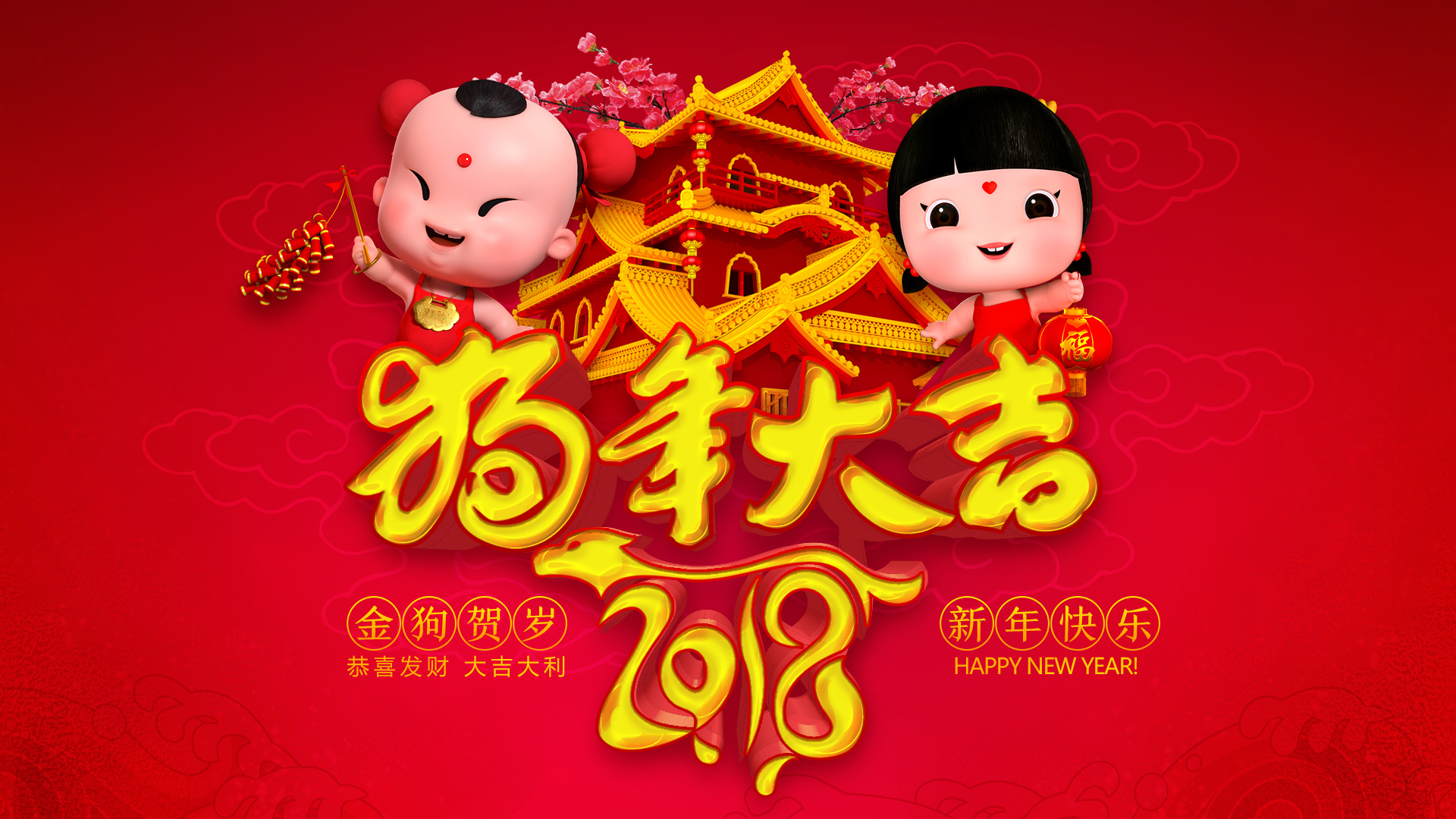 2018狗年招财童子恭喜发财免费电脑节日壁纸下载