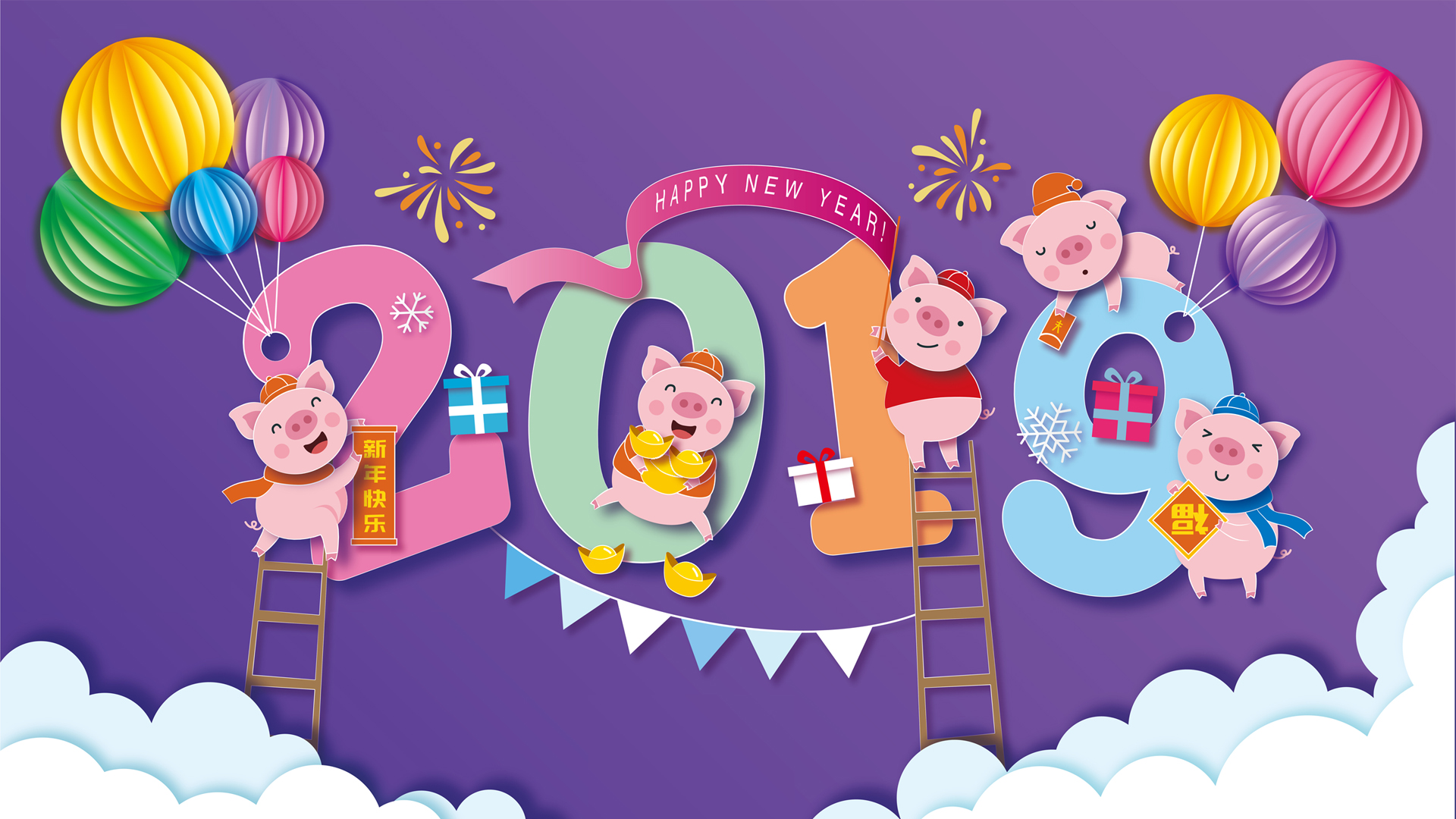 2015羊年春节喜庆可爱炮炮兵Happy New Year新年走你免费电脑壁纸下载
