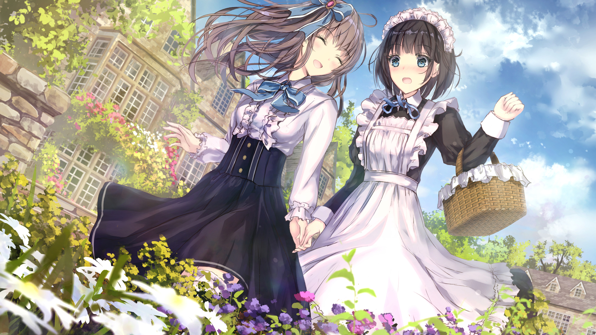 AI绘画可爱清纯白衣鲜花漂亮美女动漫免费电脑壁纸下载