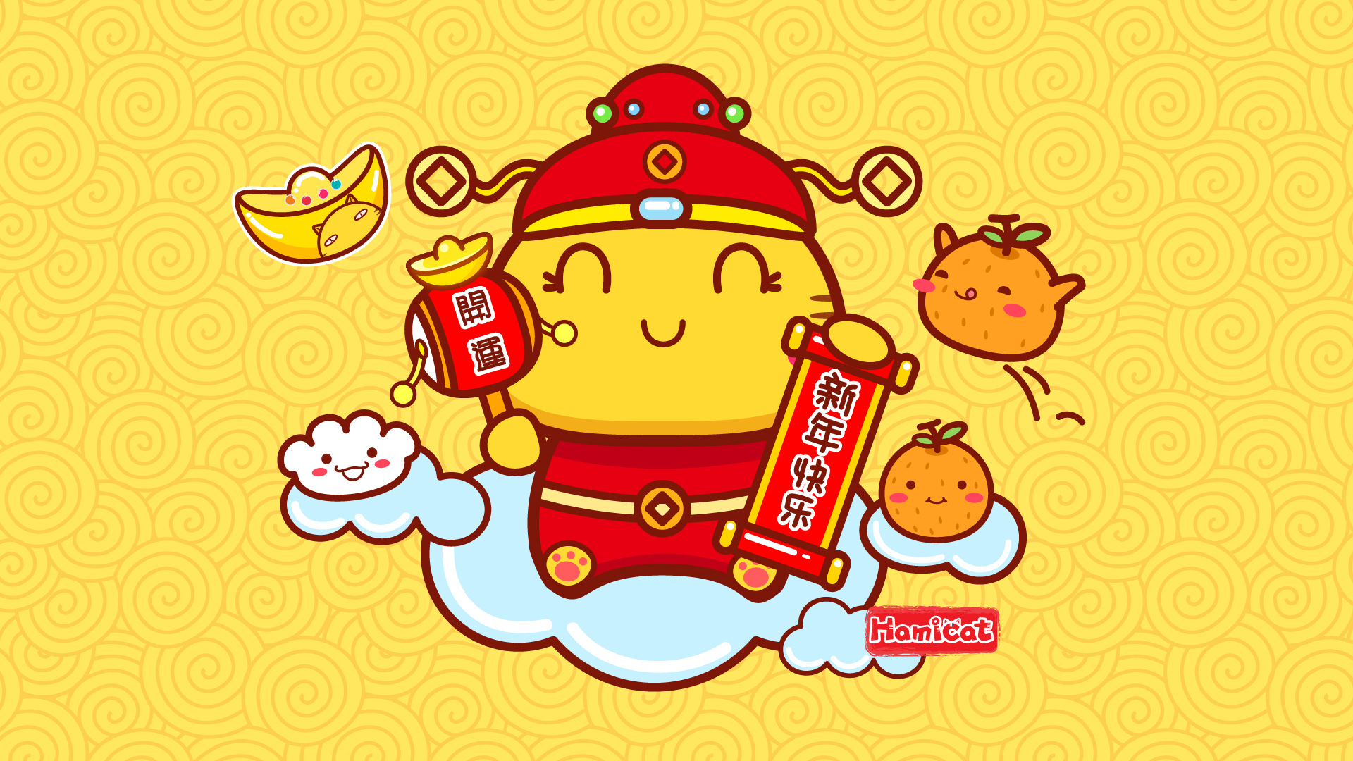 哈咪猫猴贺新春2016年节日免费电脑桌面壁纸下载