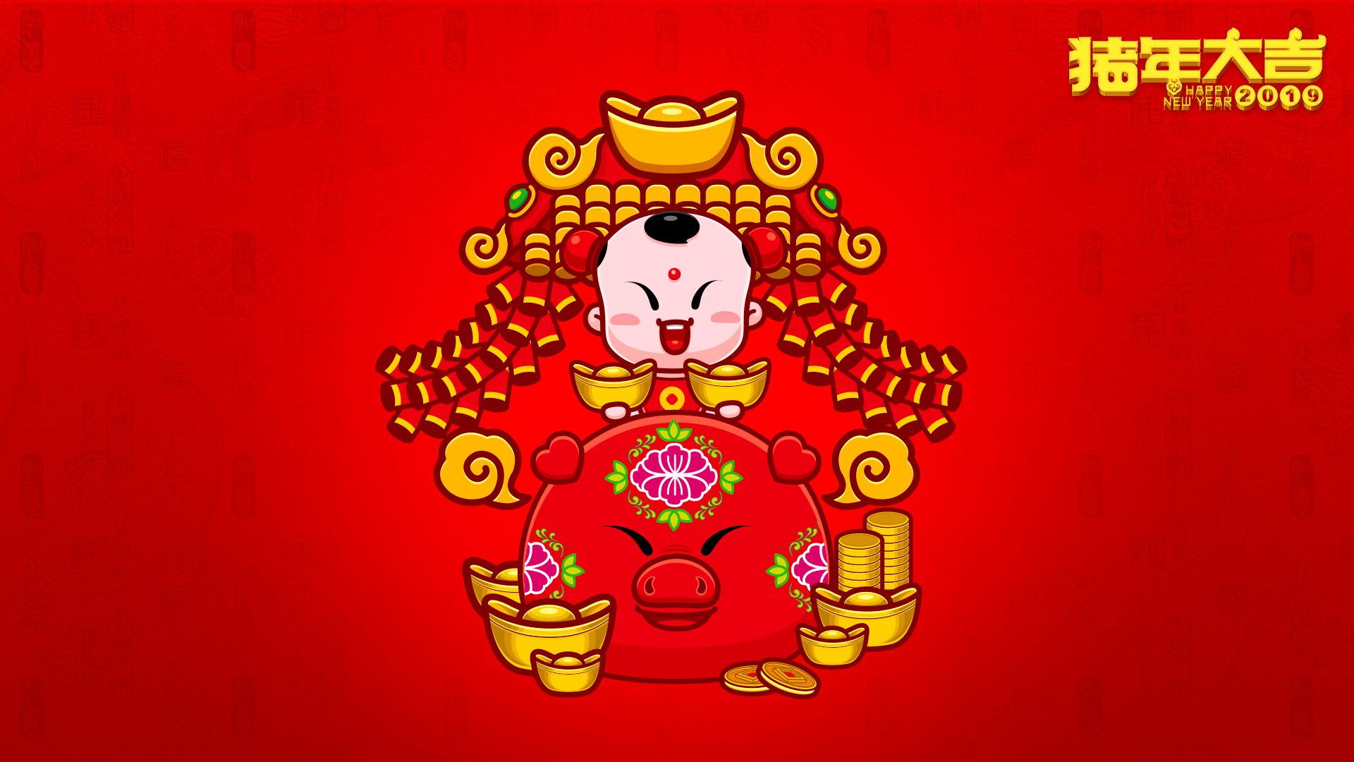 2019猪年大吉招财进宝节日免费电脑壁纸下载