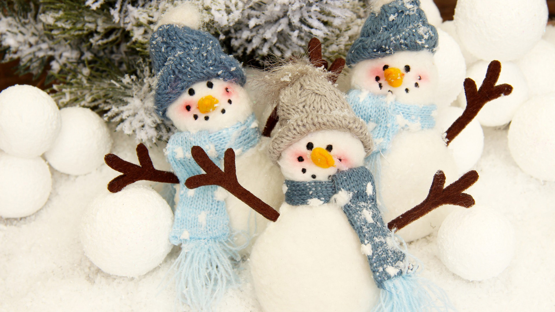可爱蓝色圣诞雪人节日免费电脑壁纸高清下载