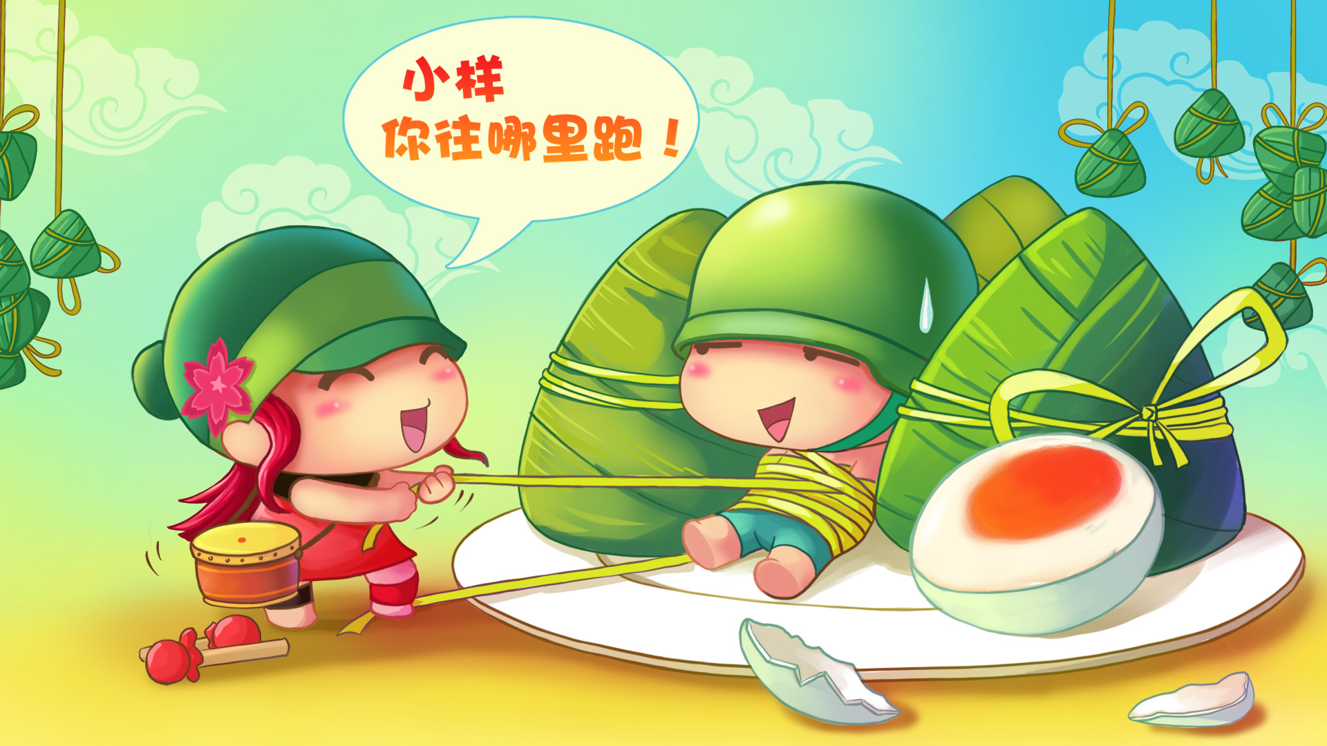2016年恭喜发财恭贺新禧招财童子节日免费电脑壁纸下载