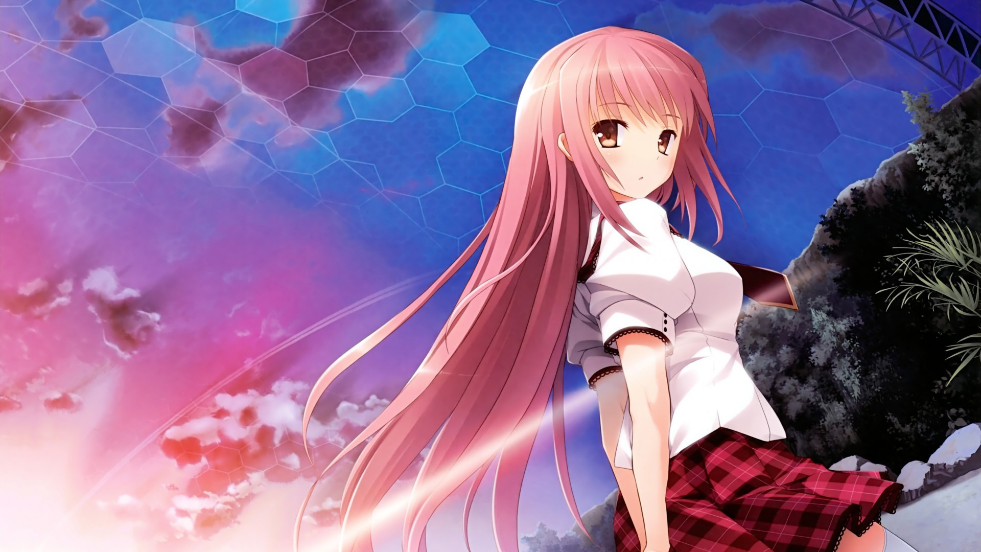 美琴明美美丽大眼睛制服动漫花瓣桌面免费电脑壁纸下载