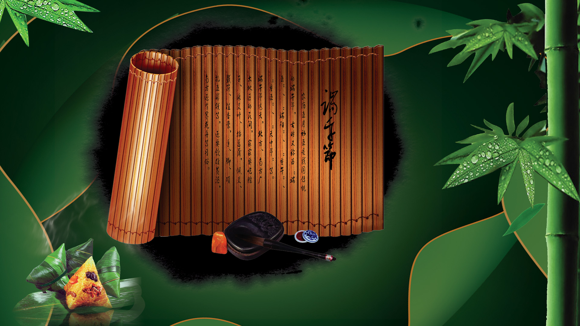 阿U端午节传统节日主题免费电脑桌面壁纸下载 含粽子雄黄酒元素