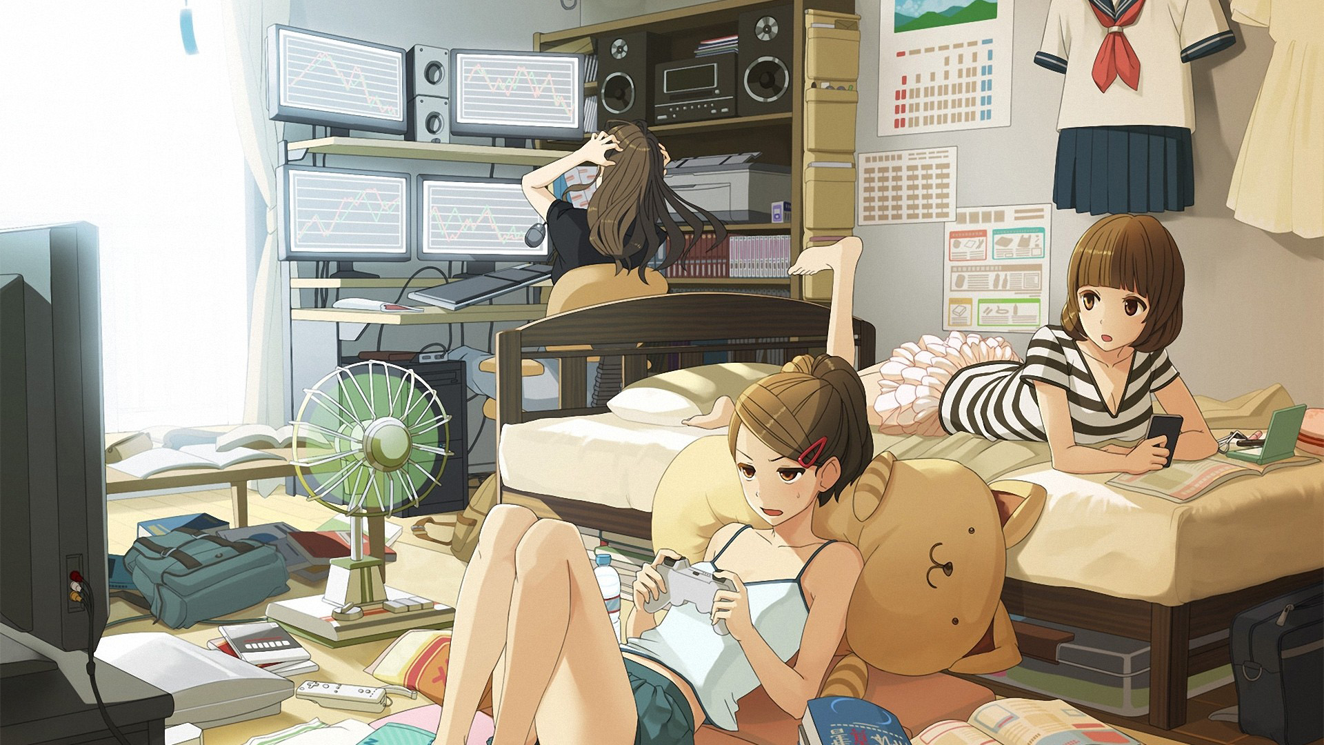 看书的女孩动漫免费电脑桌面壁纸下载