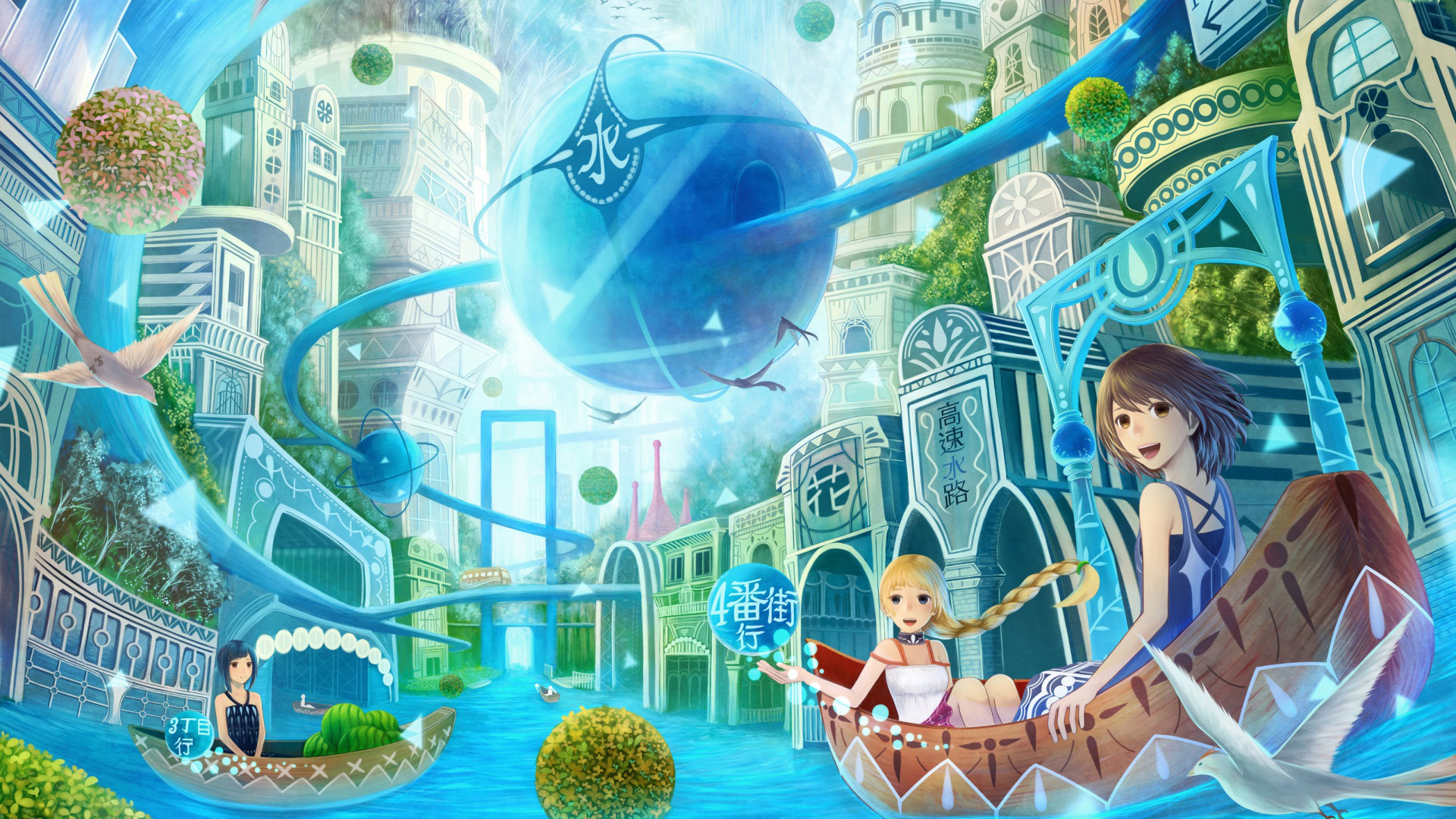 初音未来夏天黄昏气球主题高清动漫电脑壁纸免费下载