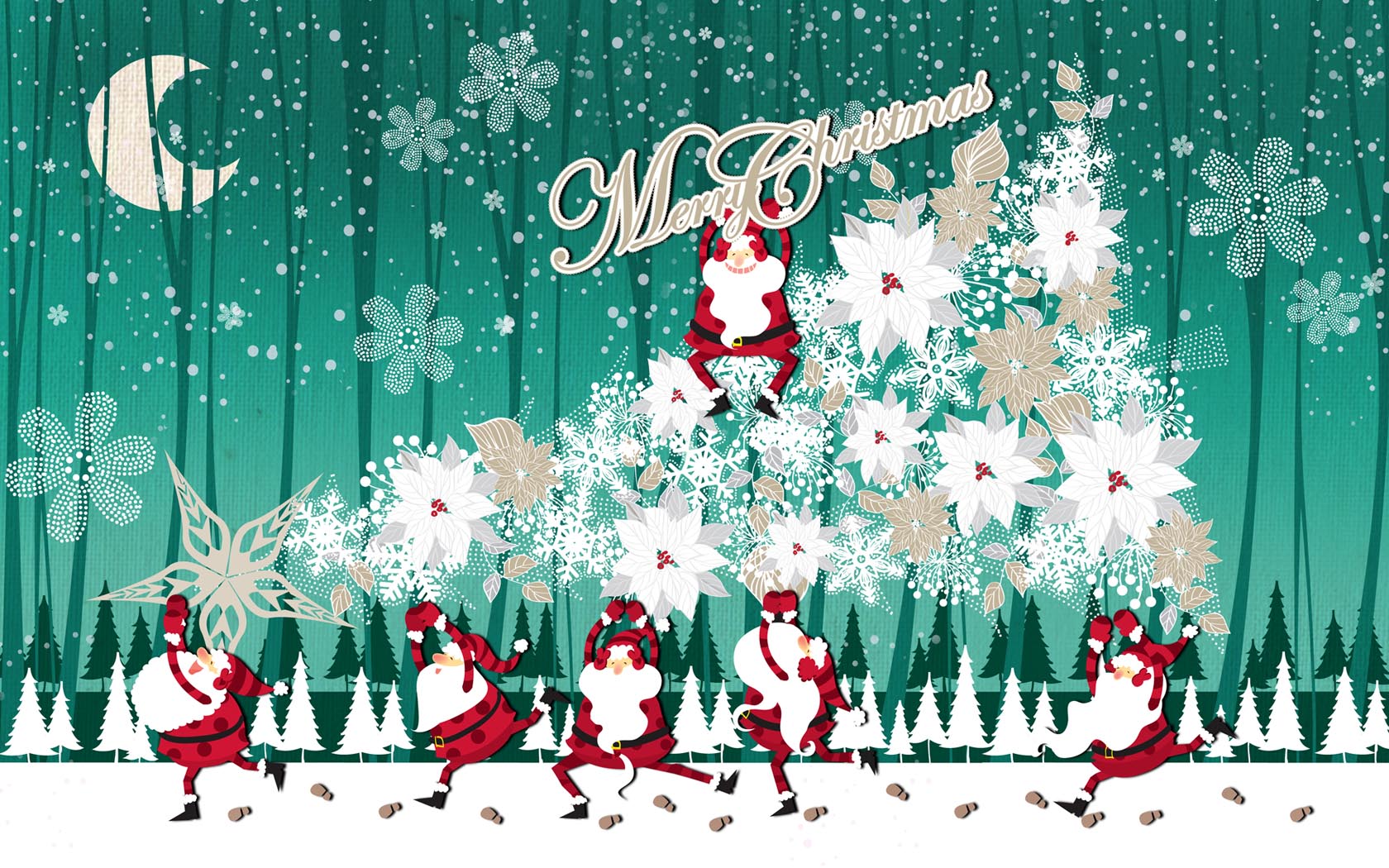 圣诞快乐圣诞老人圣诞树礼物新年节日免费电脑壁纸下载