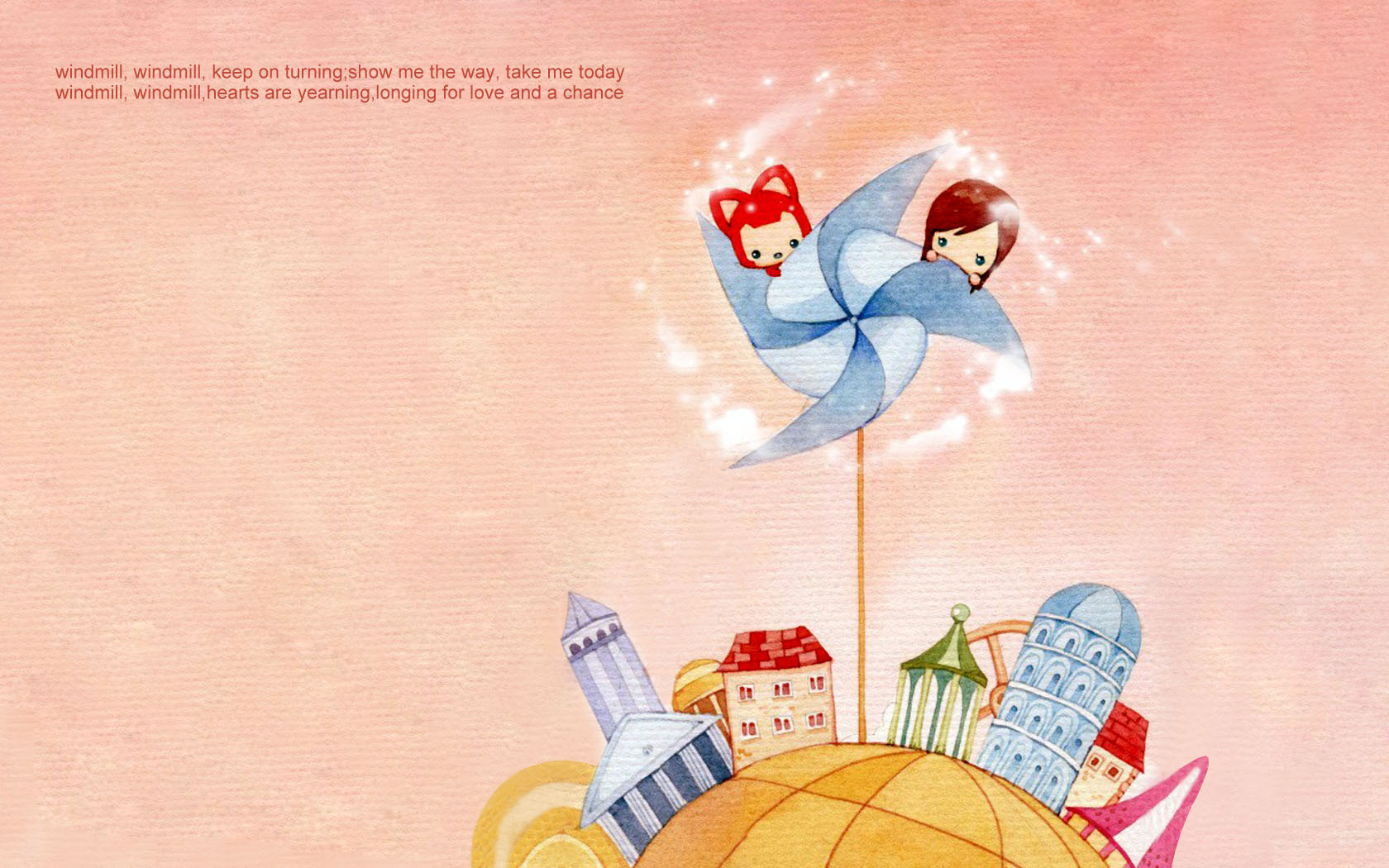 阿狸旋转风车节日免费电脑桌面壁纸下载