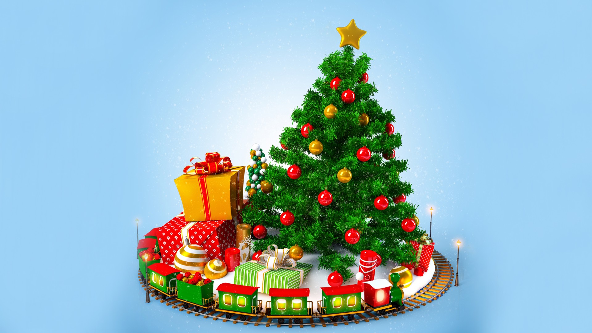 唯美文艺圣诞节Merry Christmas圣诞树铃铛手套免费电脑壁纸下载