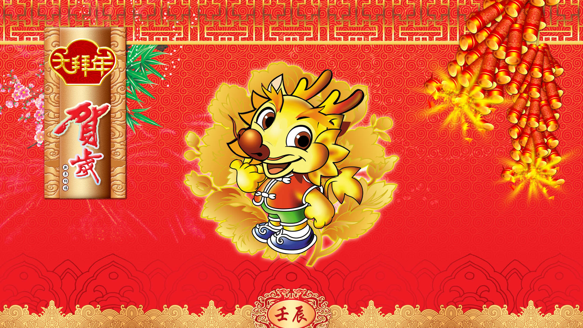 迎春接福2012招财童子节日免费电脑壁纸下载