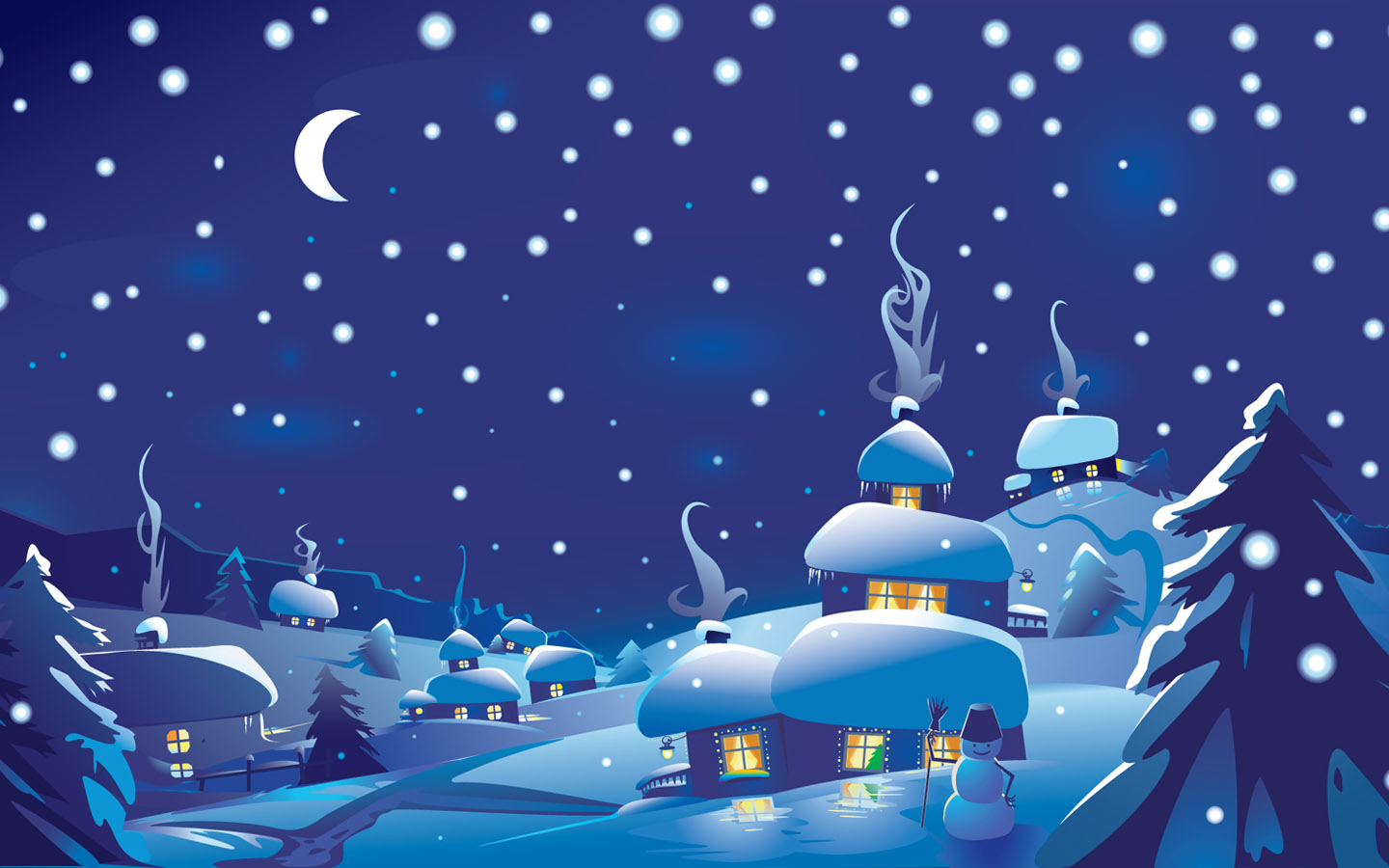 雪人圣诞老人伴冬日 圣诞节新年雪景桌面壁纸免费下载