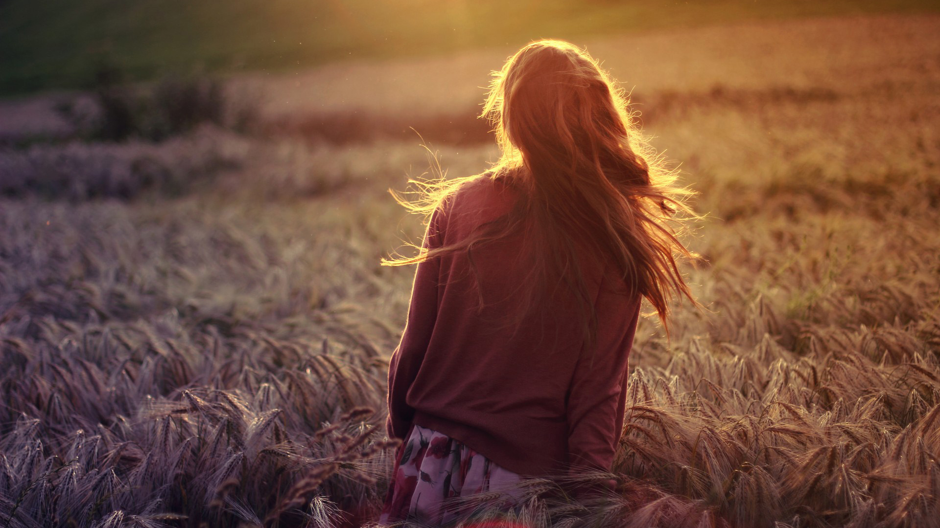 春天自然风可爱卷发女生在秋千上看书电脑壁纸免费下载