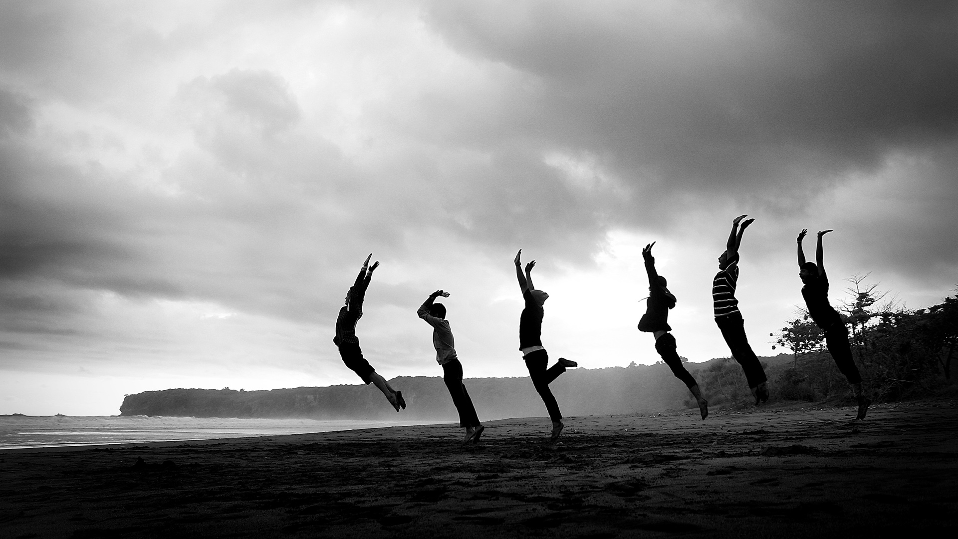 四个黑色剪影女生海景桌面壁纸免费电脑下载