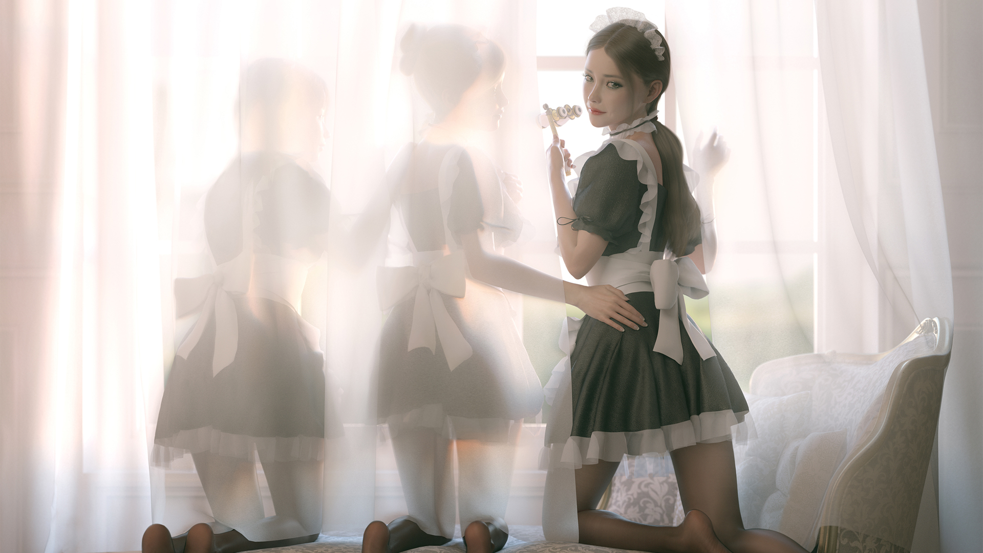 可爱兽耳女孩白丝袜长筒袜休闲吧场景二次元动漫免费电脑壁纸下载