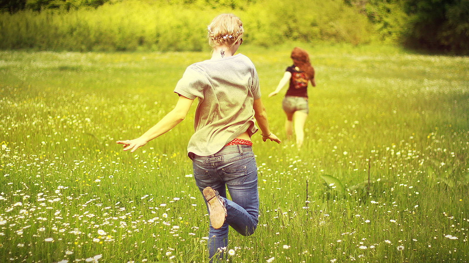 户外野花背景芭蕾舞女演员免费电脑壁纸下载