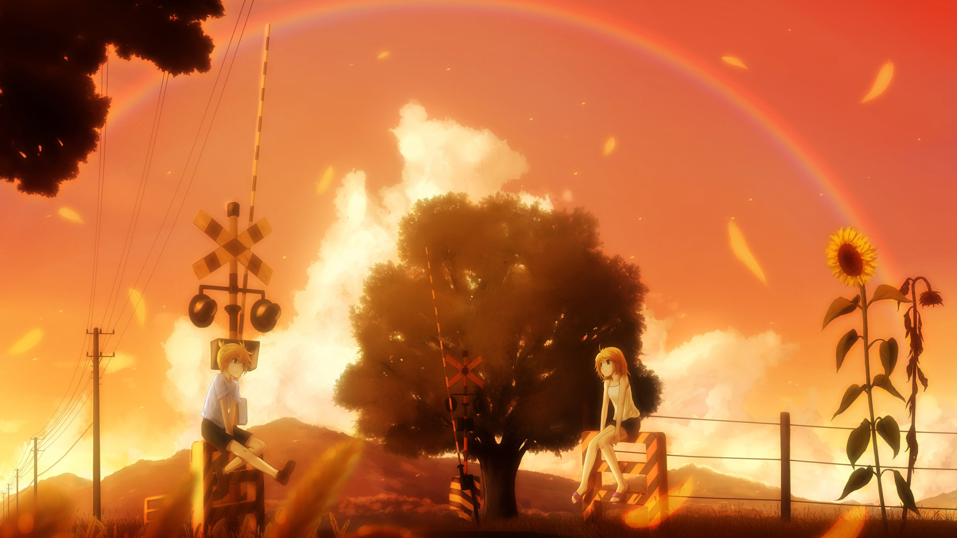 唯美动漫壁纸,女孩子与花的插画免费电脑壁纸下载