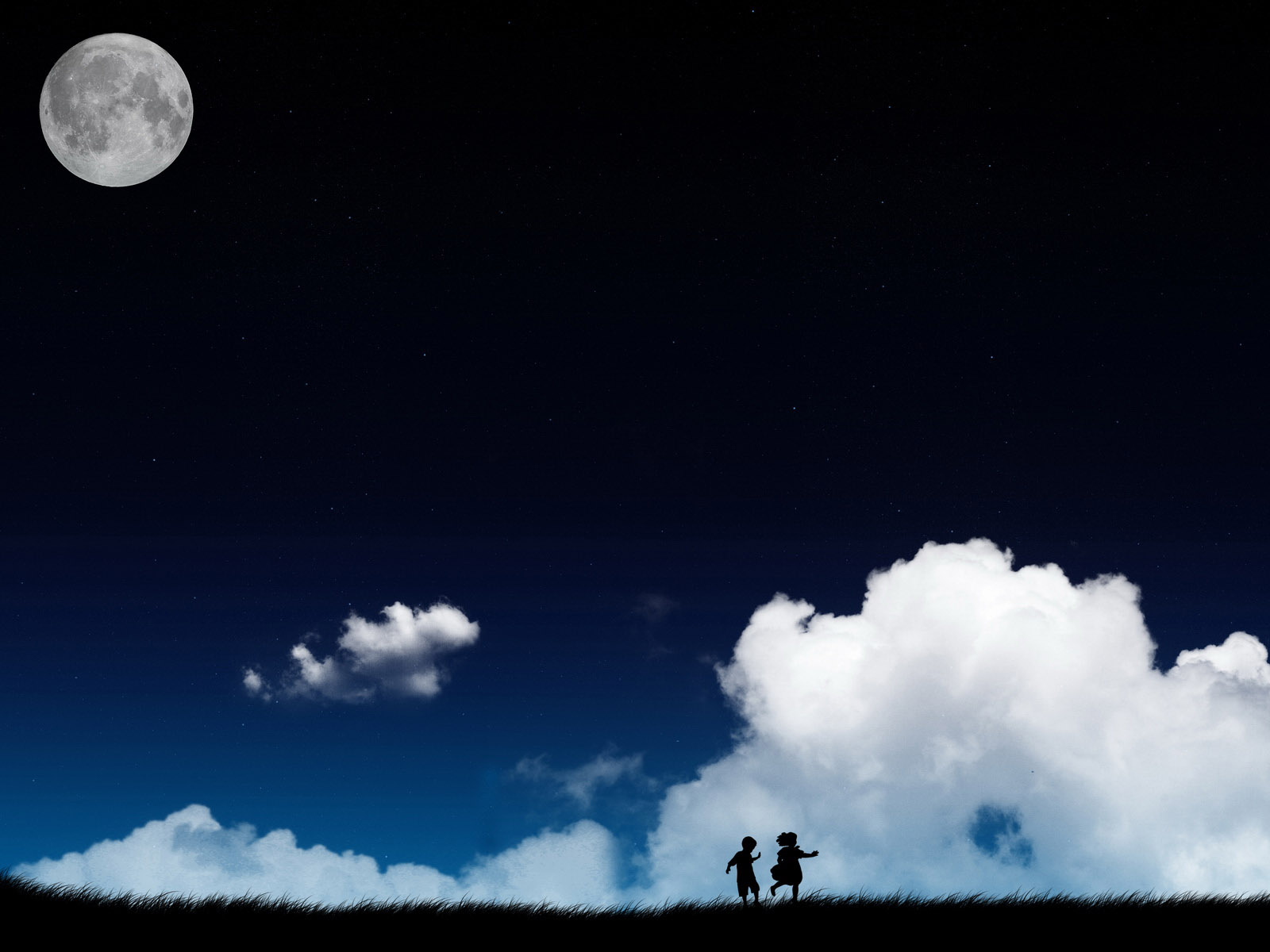 青梅竹马可爱女孩男孩桥边风景童年主题免费电脑壁纸下载