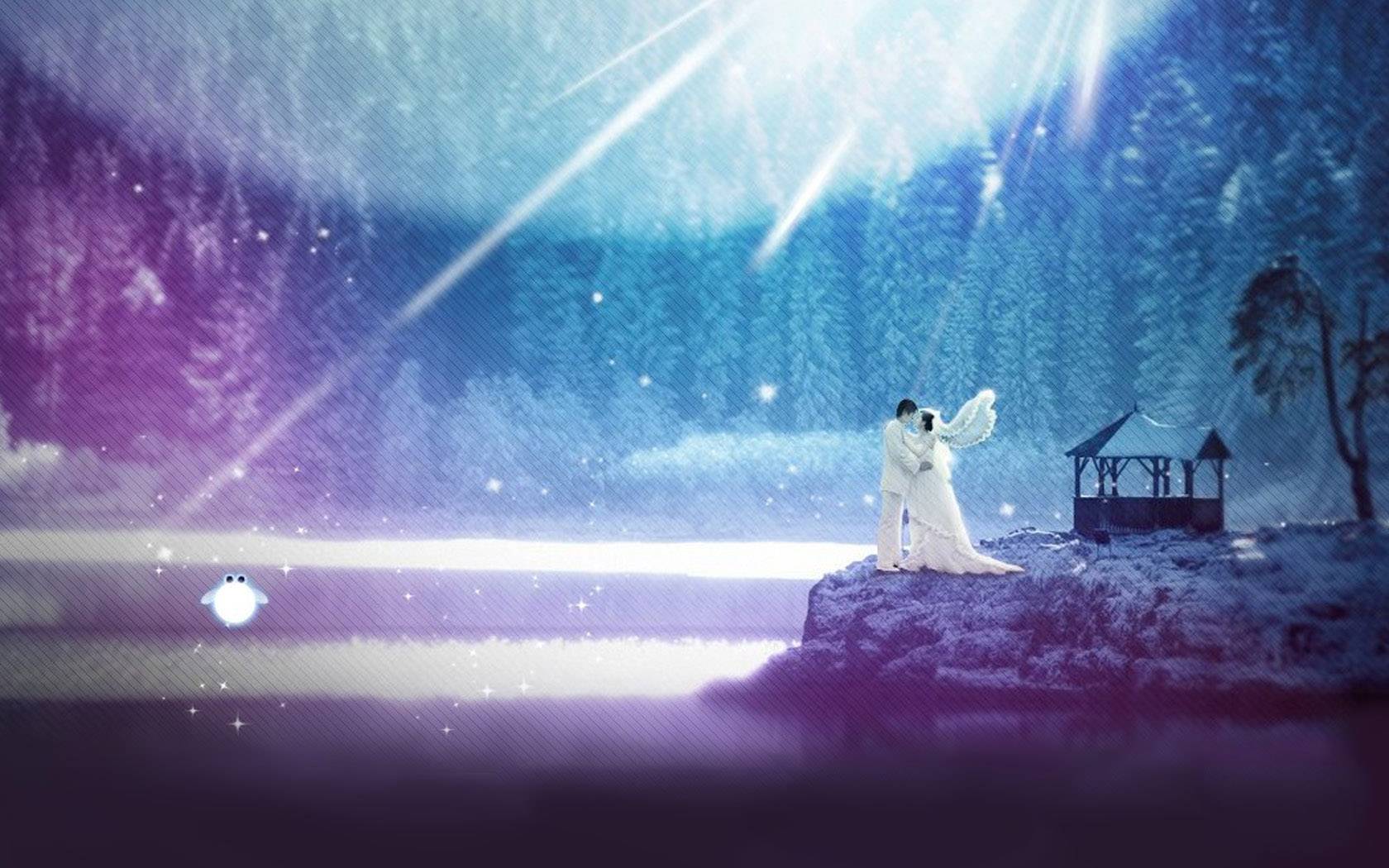 浪漫情侣拥抱湖中布景女孩男孩电脑壁纸免费下载