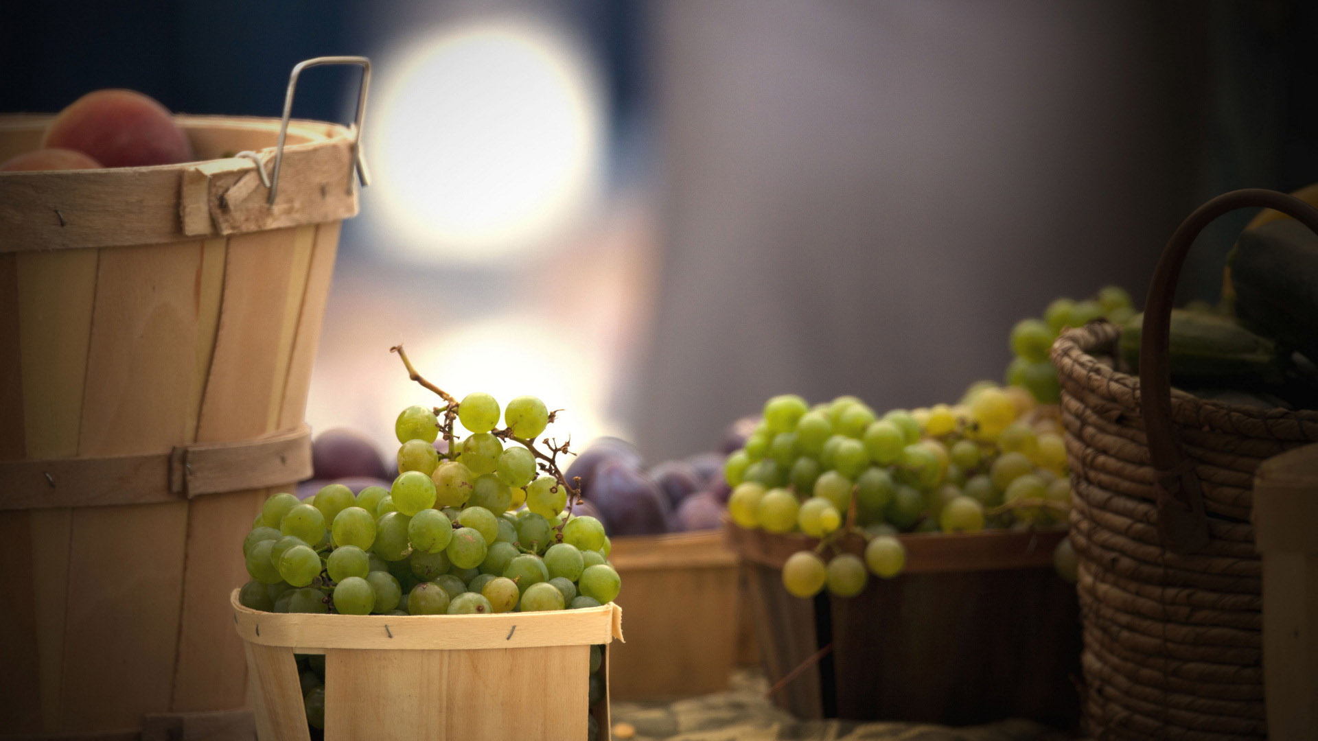 新鲜甜樱桃水果篮子绿色背景桌面壁纸免费下载