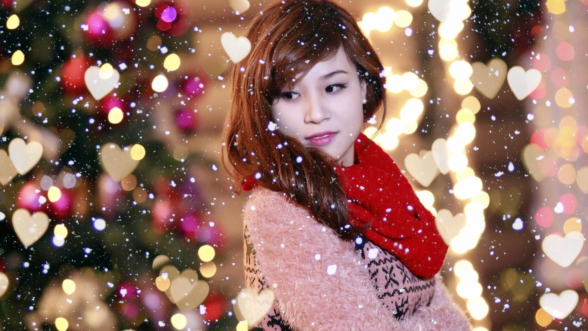 圣诞节可爱美女许愿梦幻免费电脑壁纸下载