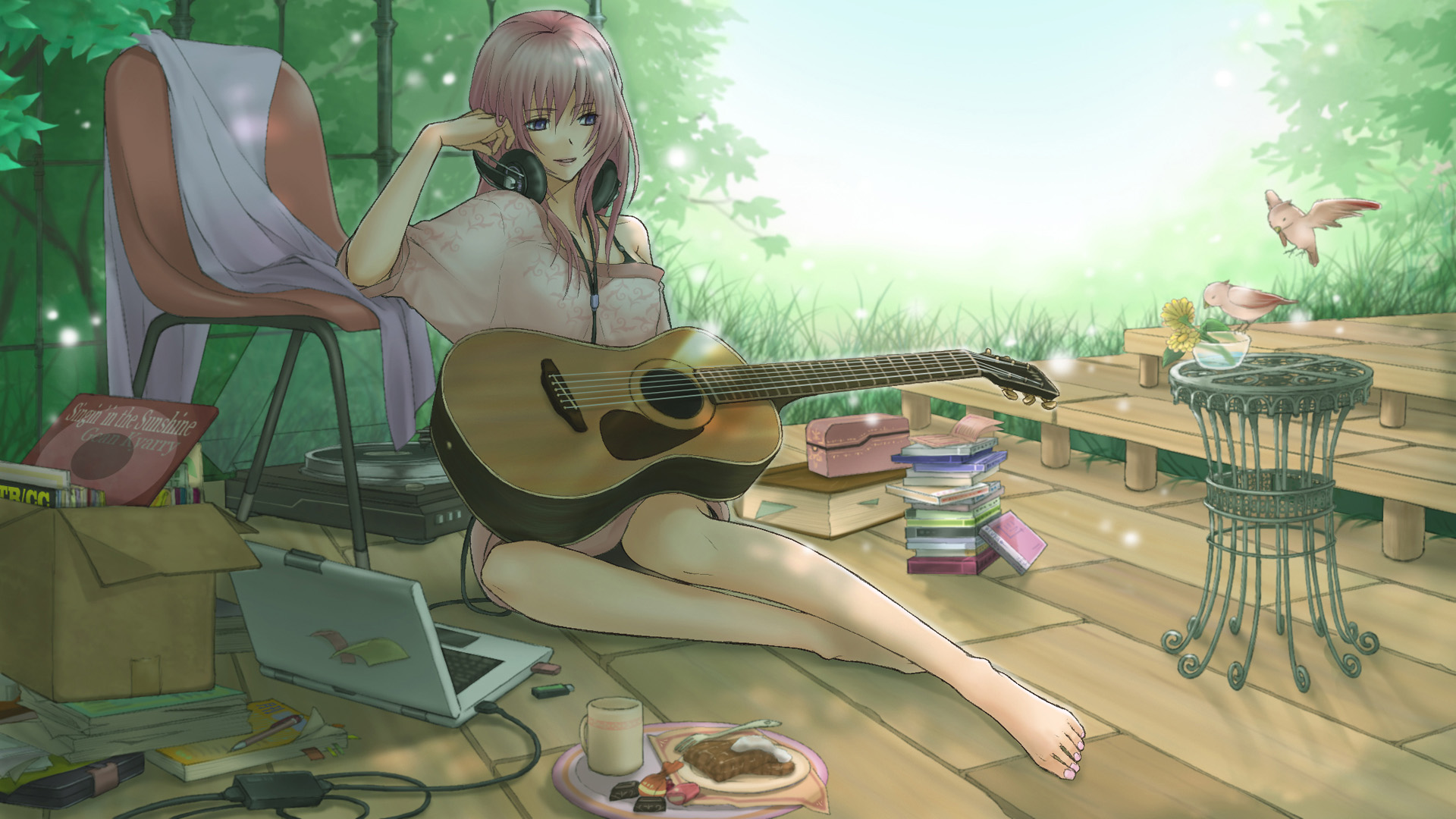 kikivi女孩穿和服坐着看猫花盆院子动漫免费电脑壁纸下载