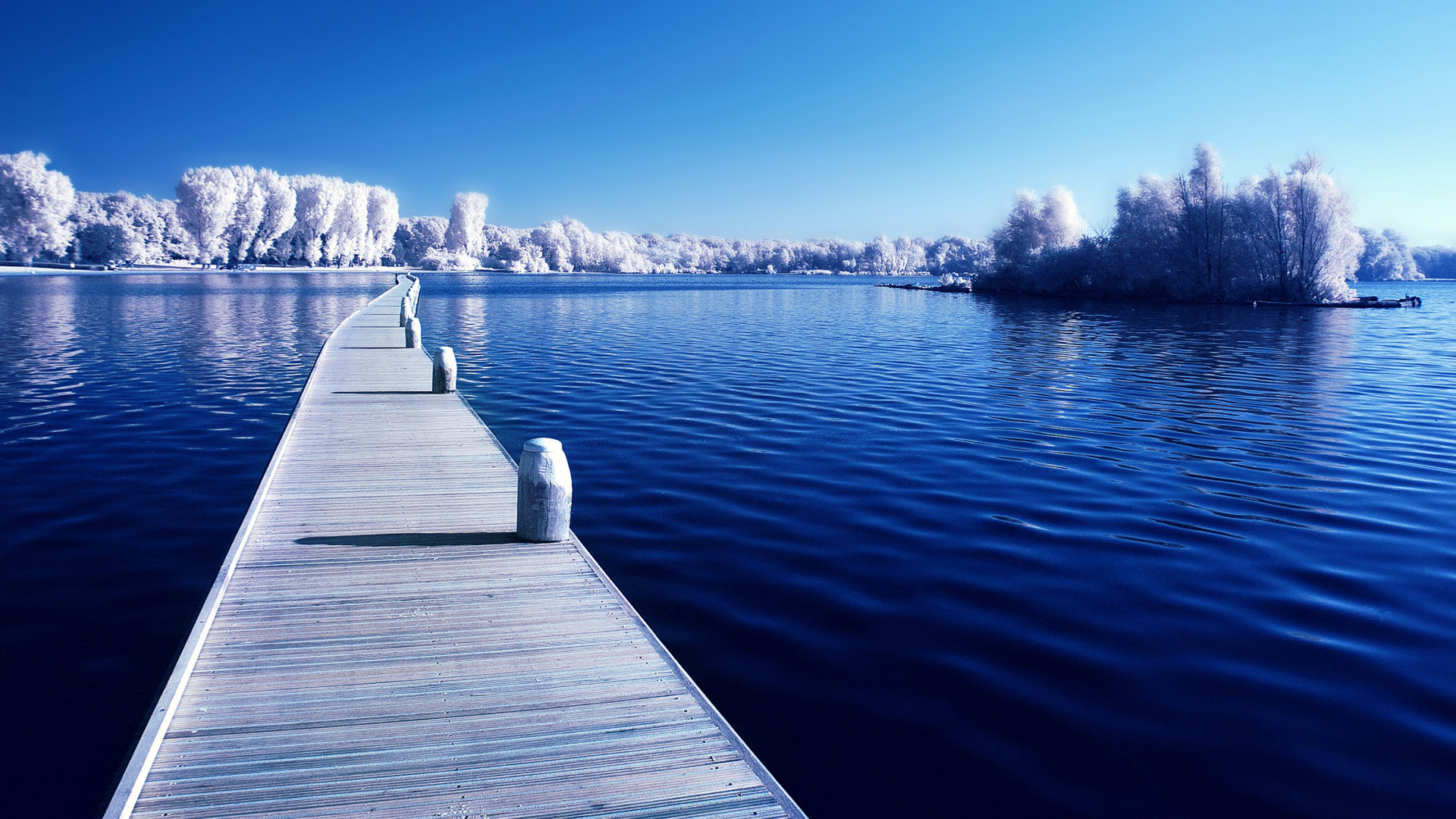 秋天天空湖泊树木叶子风景免费电脑桌面壁纸下载