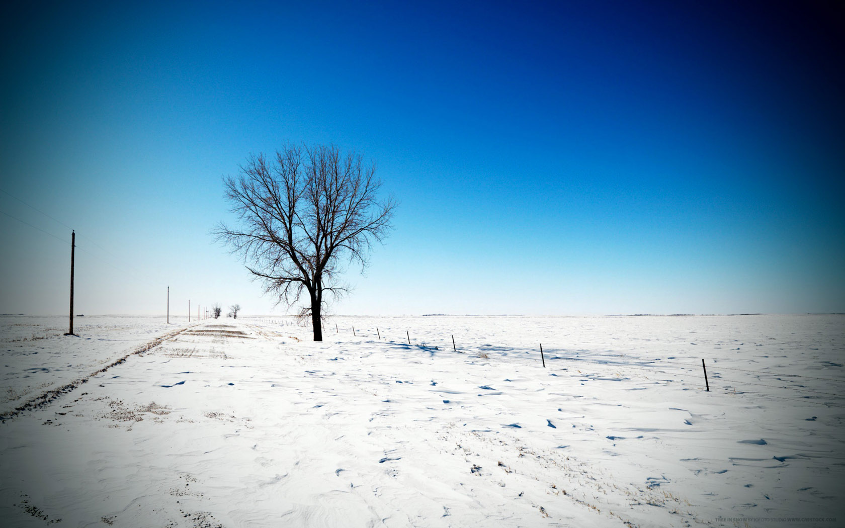 冬天村屋雪树夜景星星风景免费电脑壁纸下载