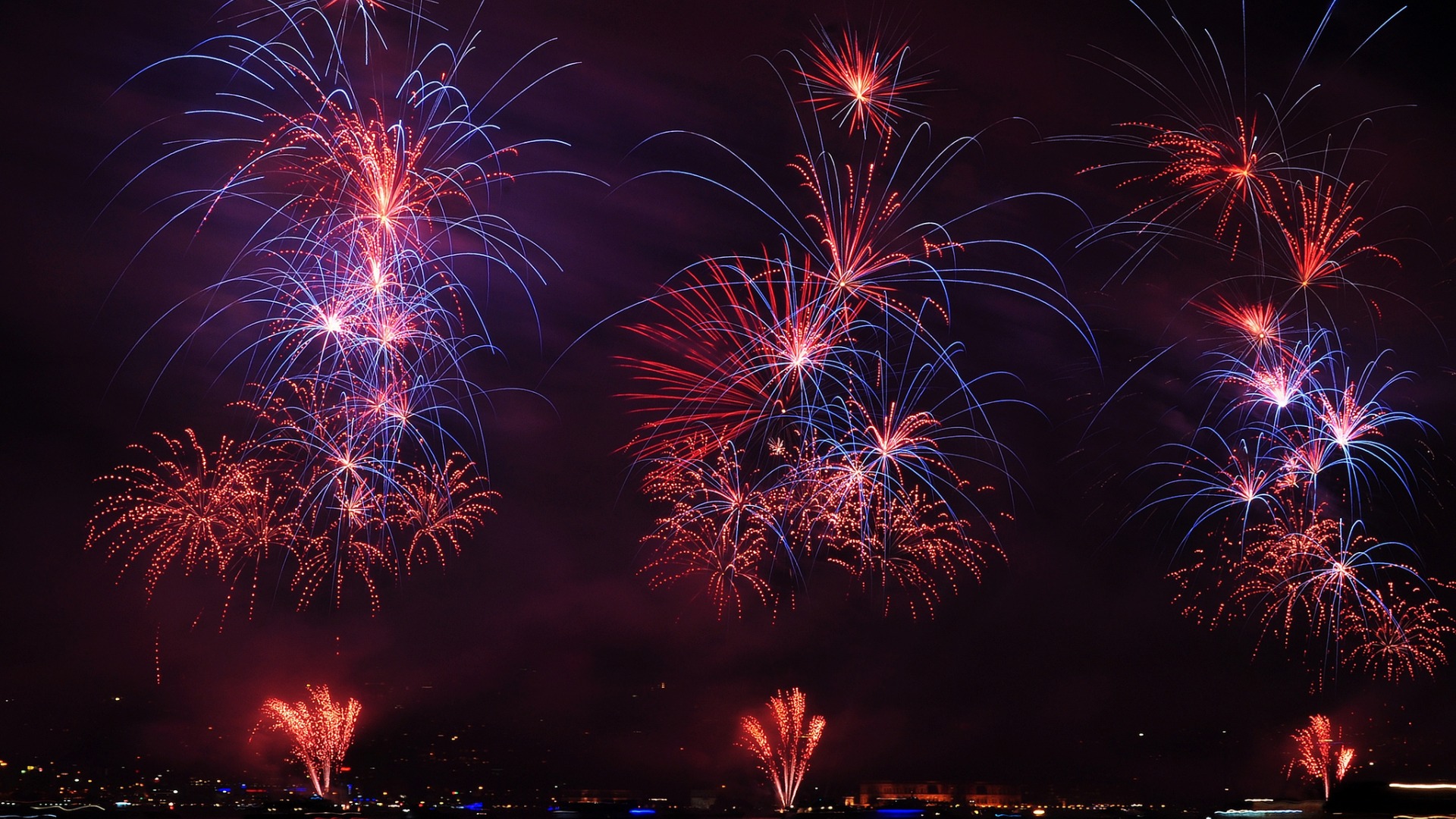 城市夜晚黑红色灯光个性高清风景免费电脑壁纸下载