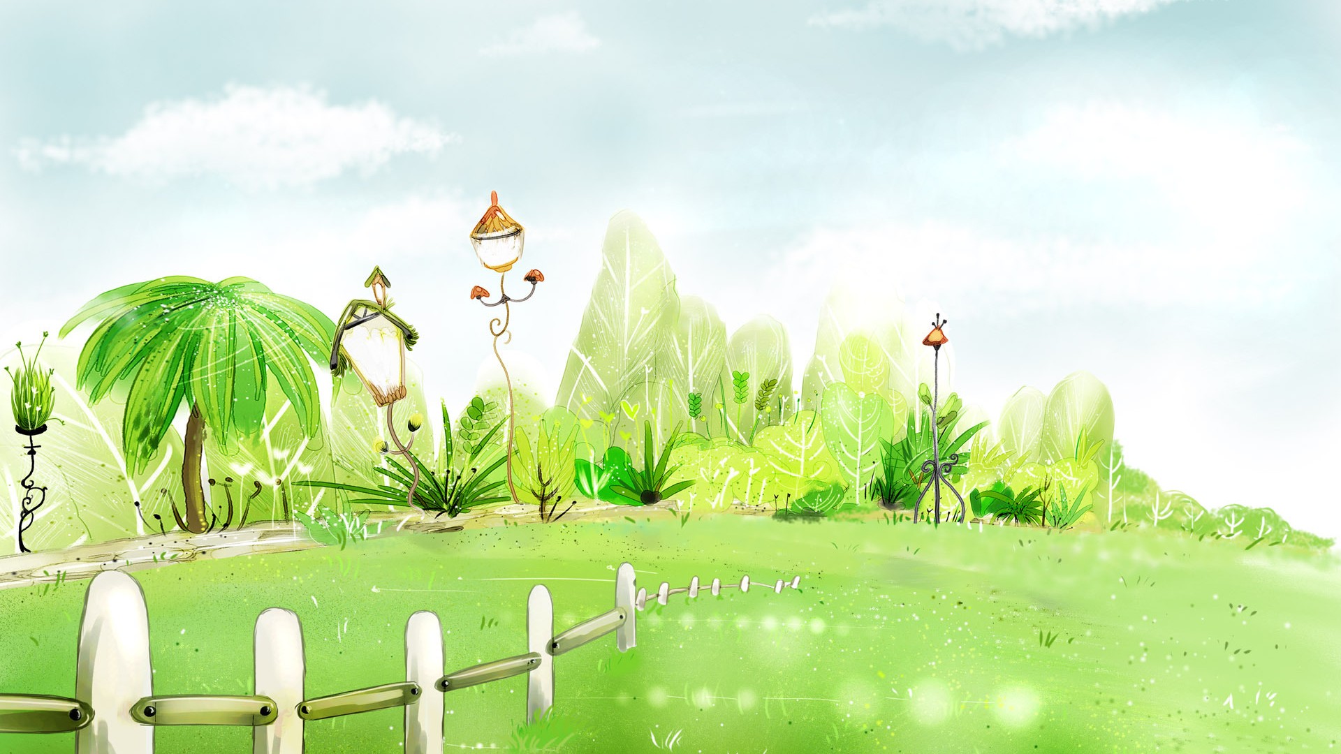 草天空树木围墙栅栏精美风景电脑壁纸免费下载