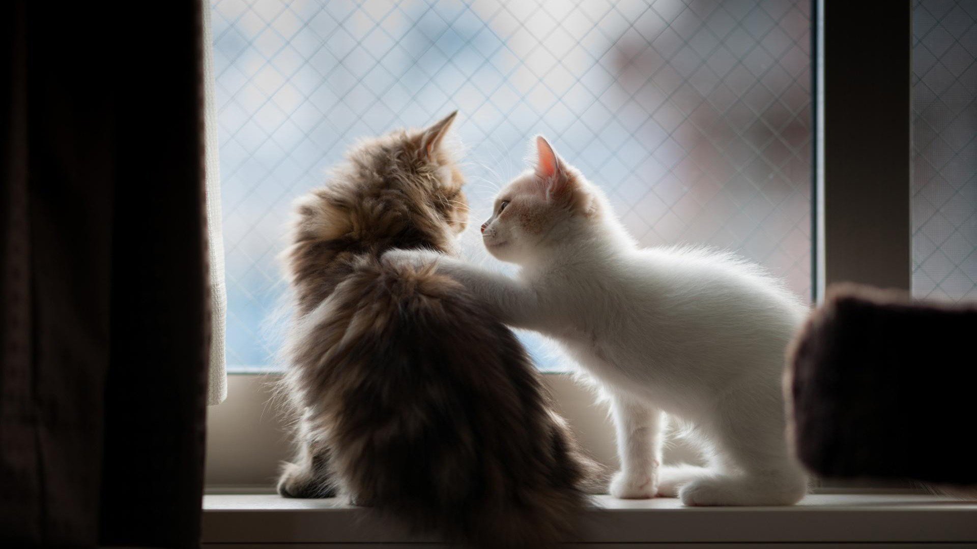 红眼睛猫跳跃房子主题动物免费电脑壁纸下载