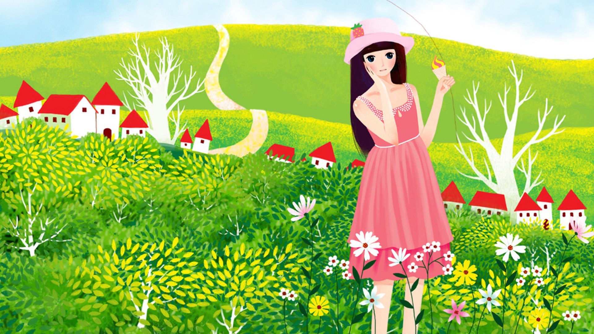 画儿晴天可爱女生桌面壁纸 免费电脑可爱壁纸下载
