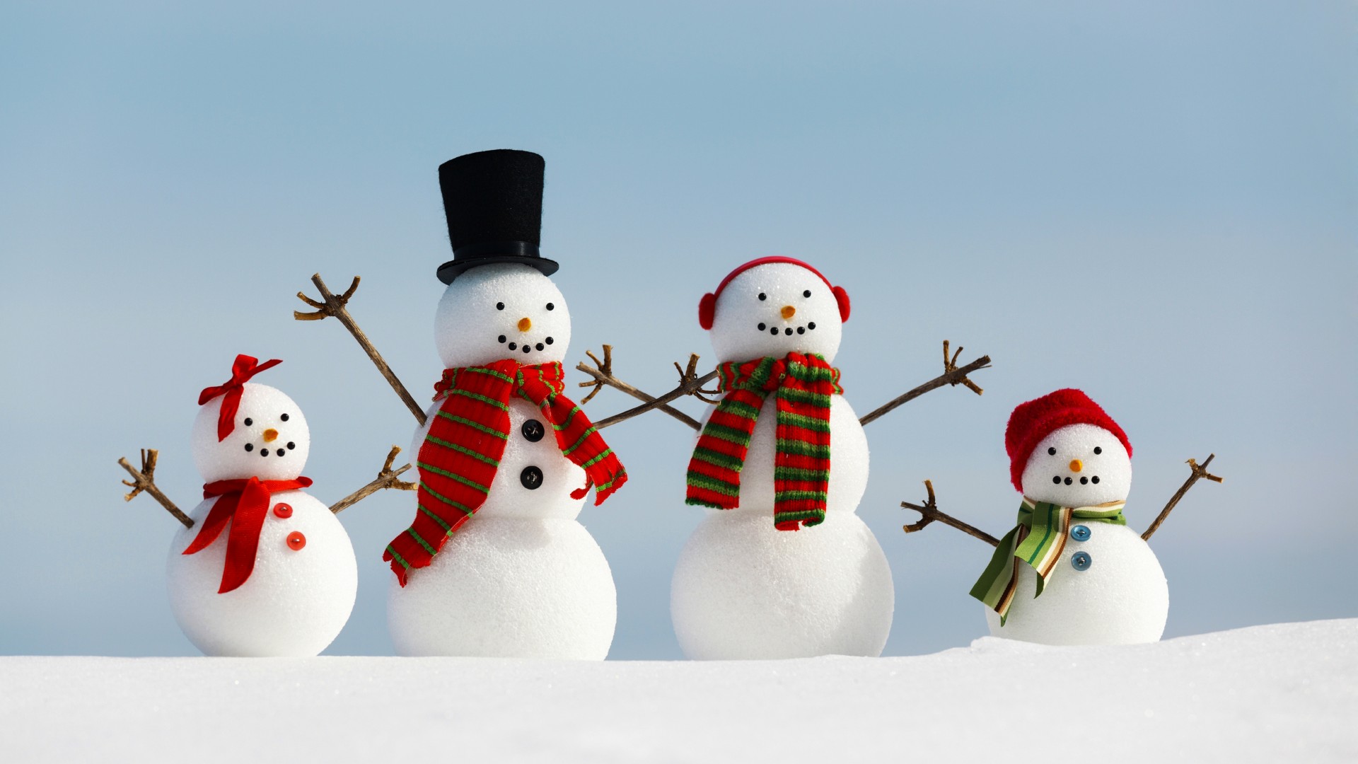 四个小雪人冬季节日可爱免费电脑桌面壁纸下载