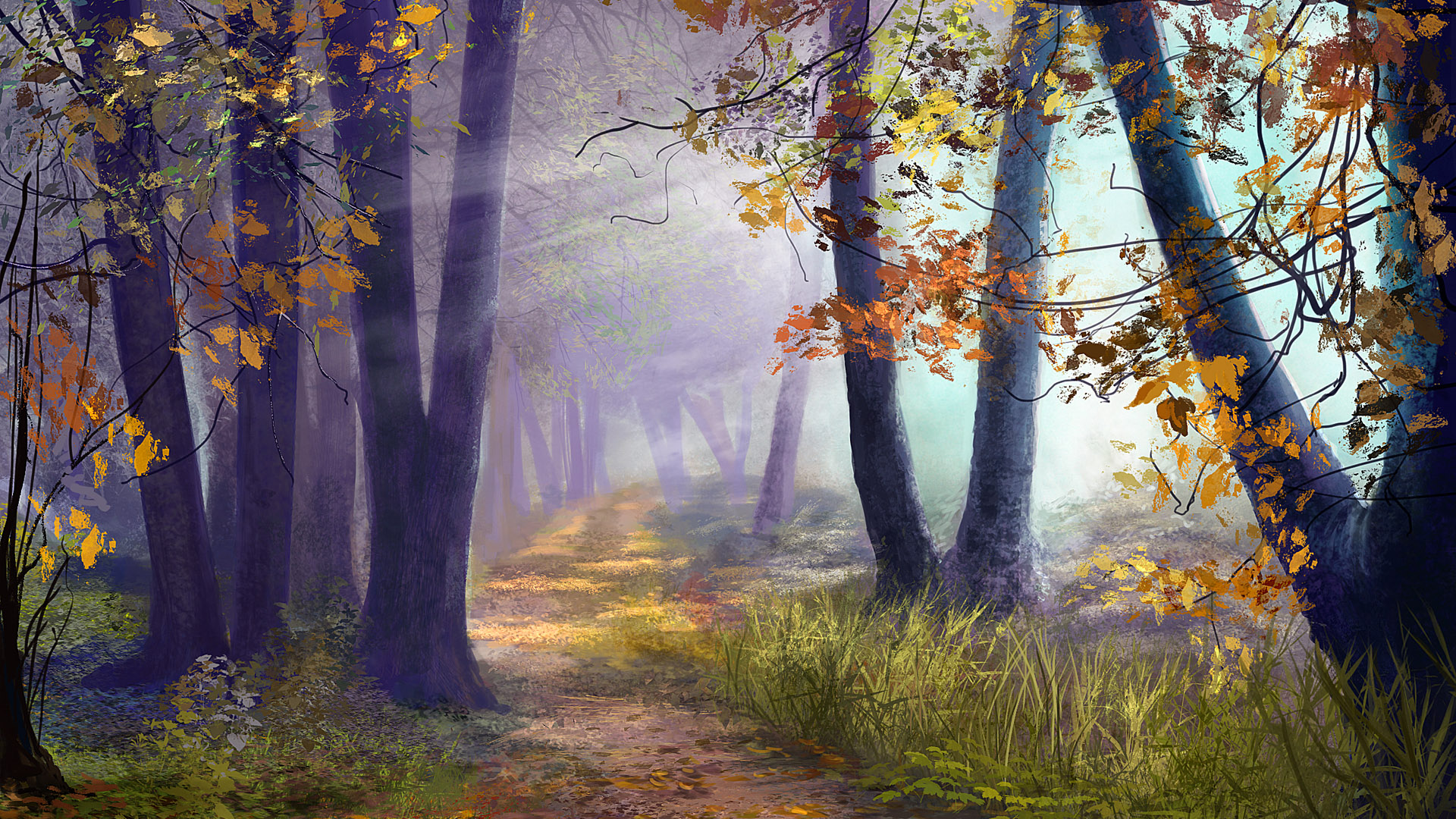 手绘绿色森林唯美免费电脑壁纸高清下载