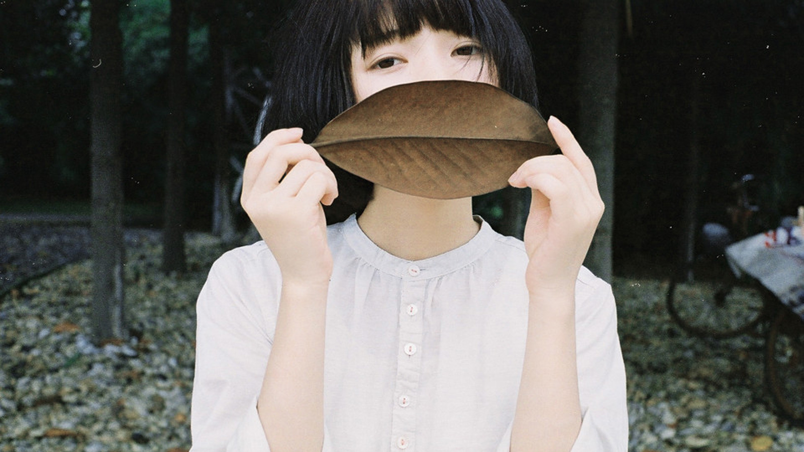 女孩黑发蓝裙自然树林唯美免费电脑壁纸下载