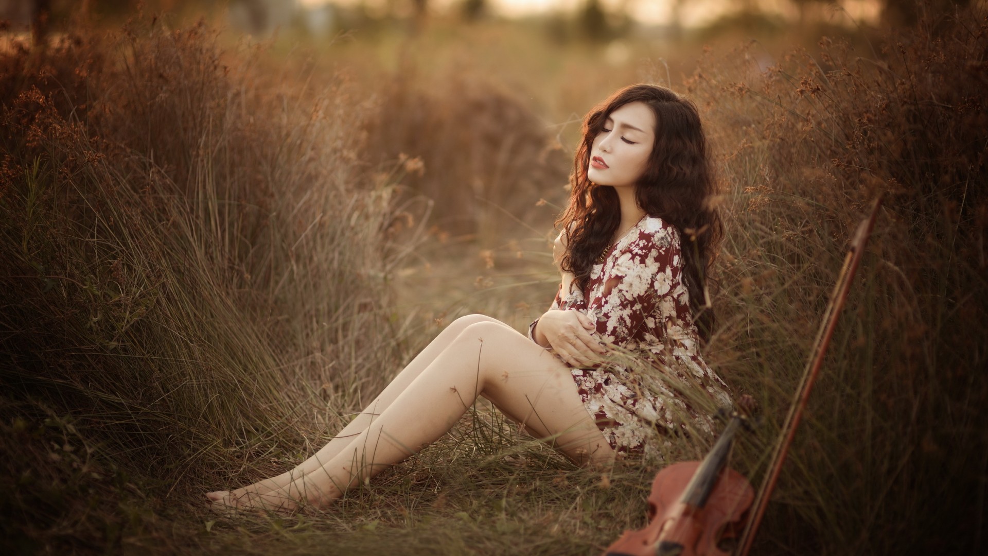 漂亮长发美女粉色礼服裙大海纸船唯美意境免费电脑壁纸下载