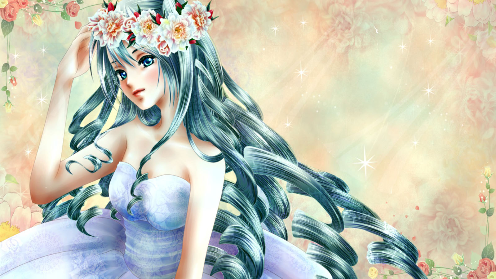 水晶爱心女孩艺术绘画唯美免费电脑壁纸下载