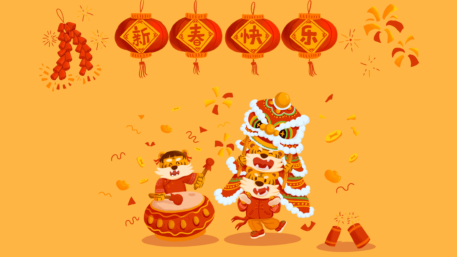 虎年2022年新年快乐卡通节日免费电脑壁纸下载