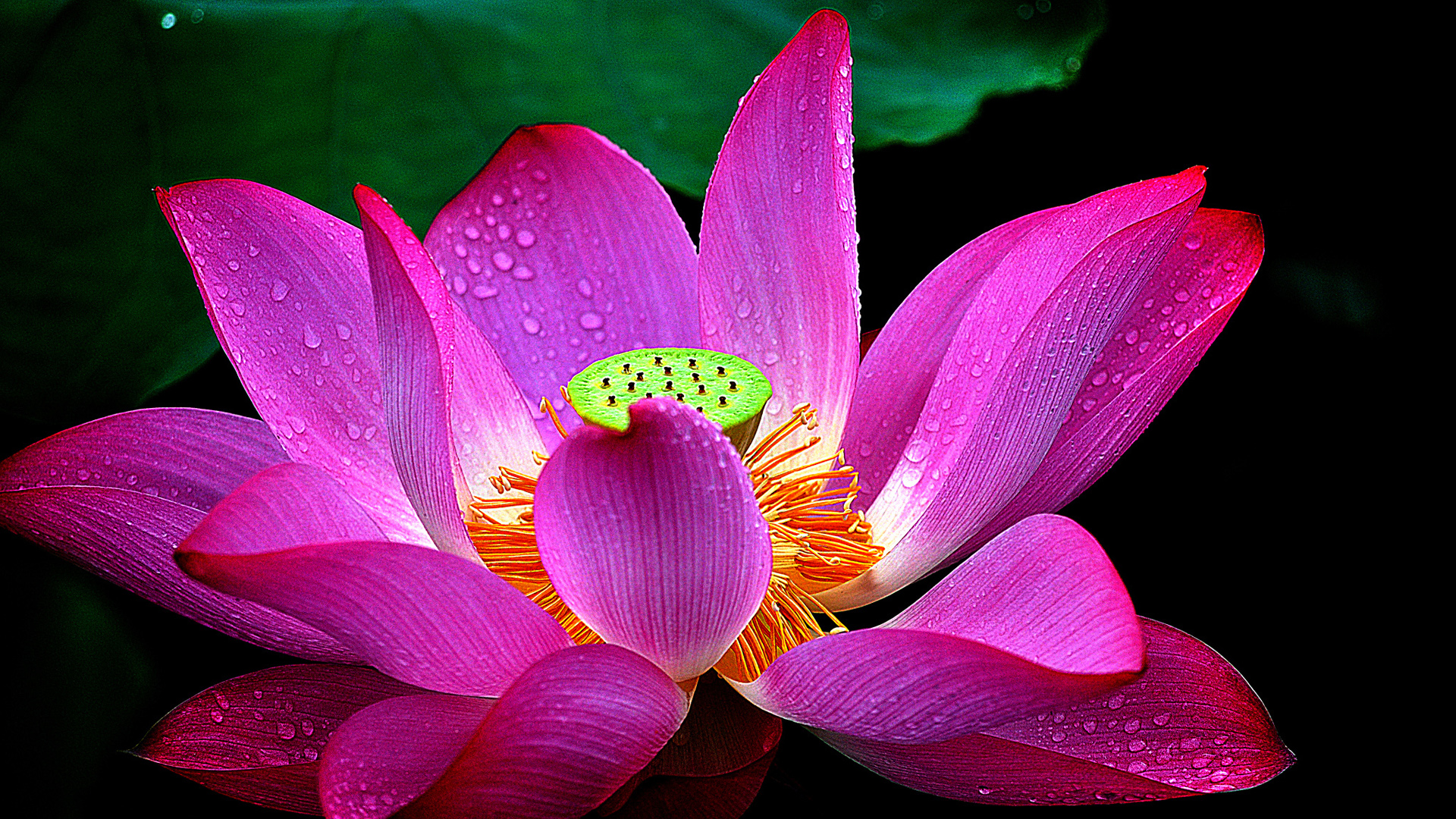 粉色莲花露珠荷塘花卉免费电脑桌面壁纸下载