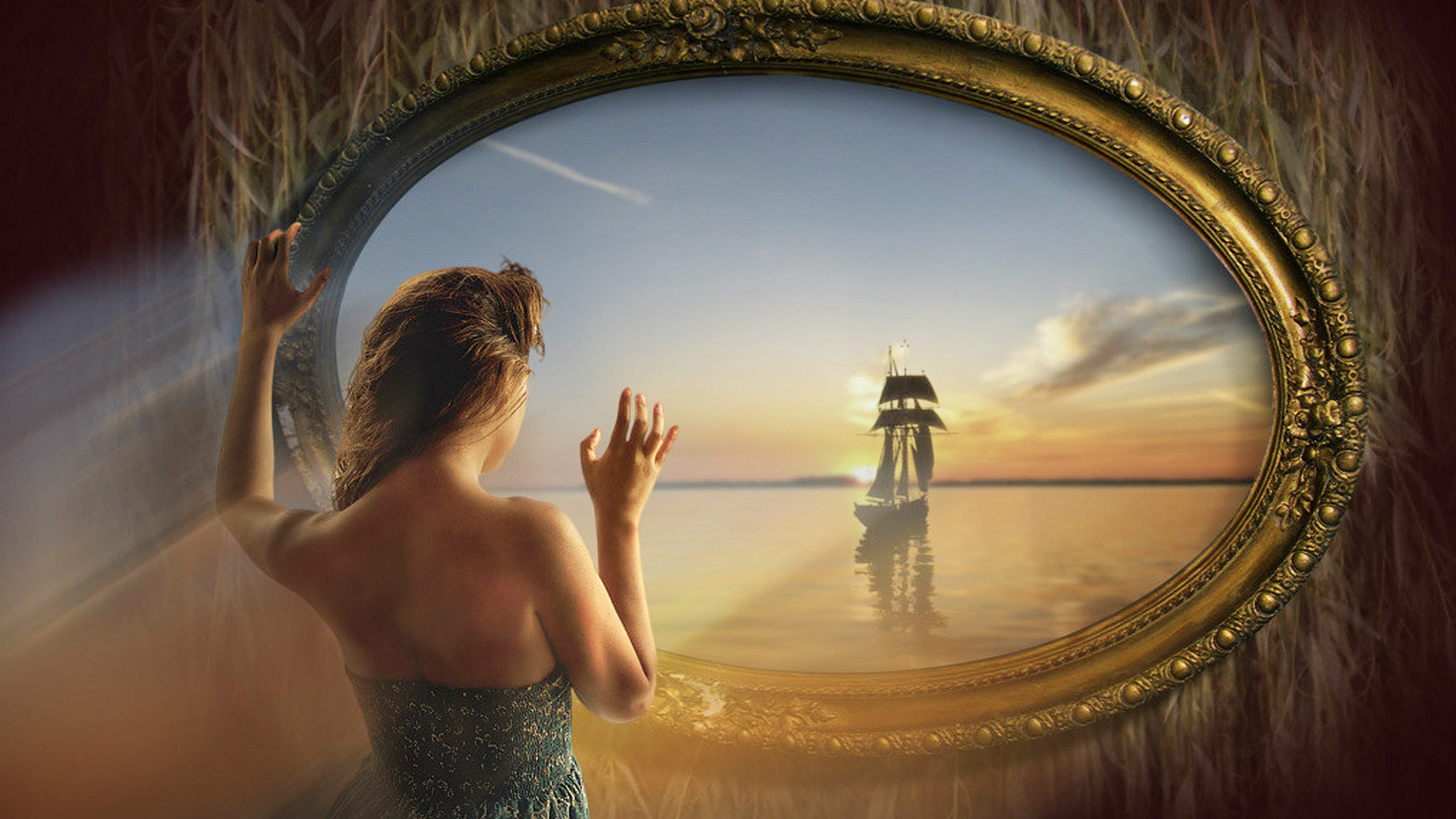 早晨河畔蜡烛旁女孩唯美电脑壁纸免费下载