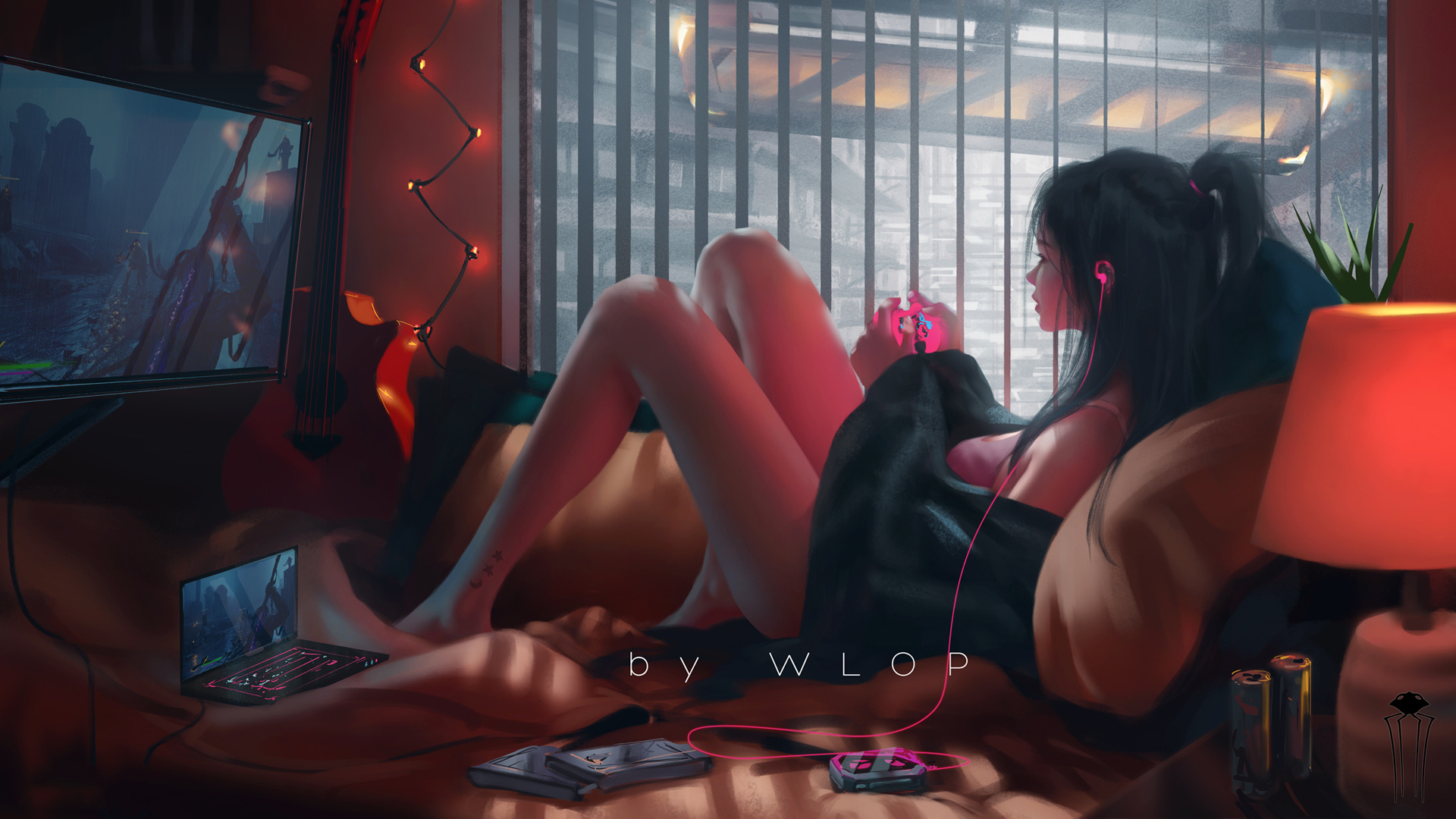 二次元高清动漫壁纸,红裙白袜女孩与好看腿手机电脑免费下载