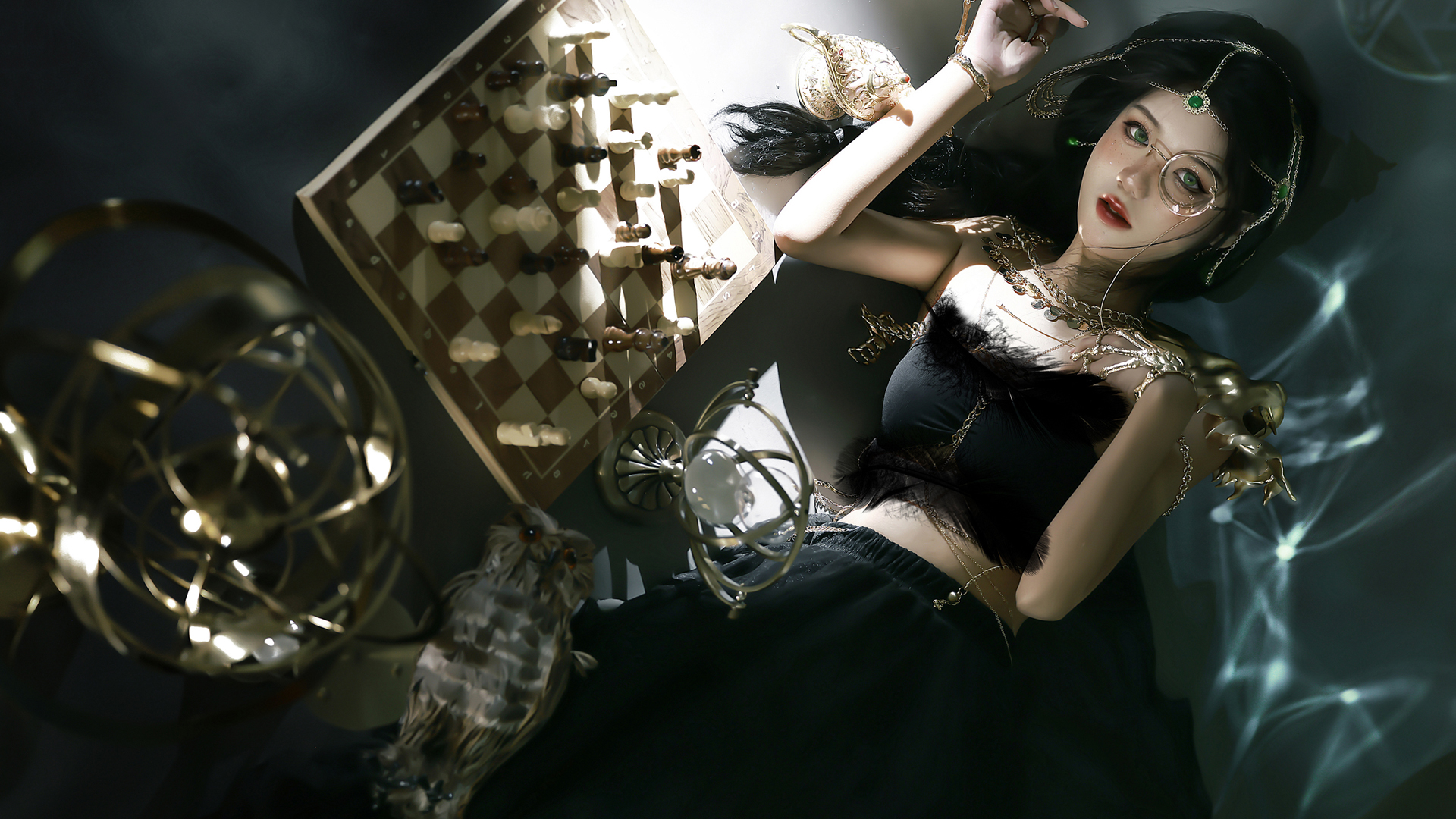 美女长发眼神魅惑面具主题免费电脑桌面壁纸下载