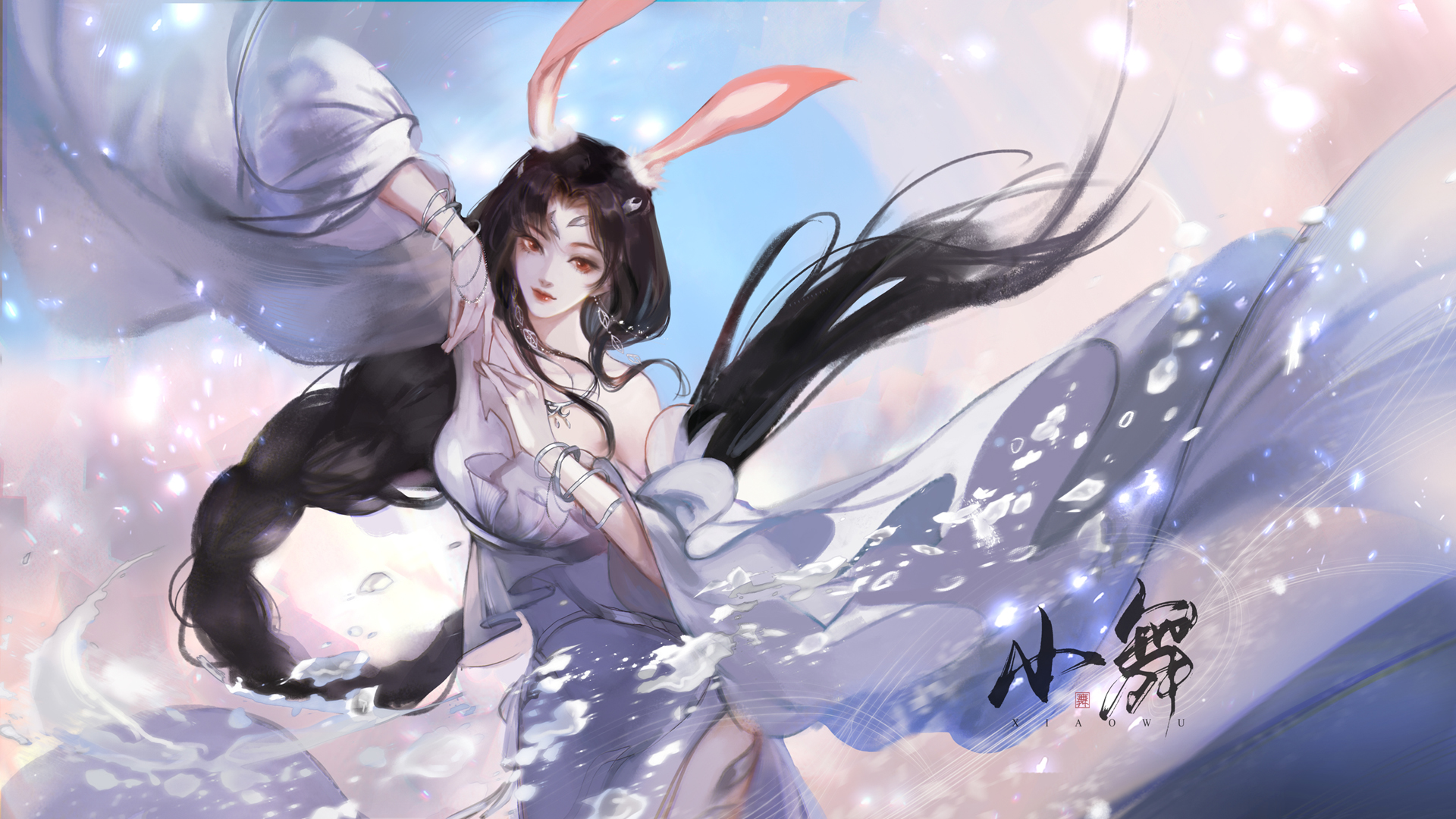 女孩随风飘动发丝与丝带动漫电脑壁纸免费下载