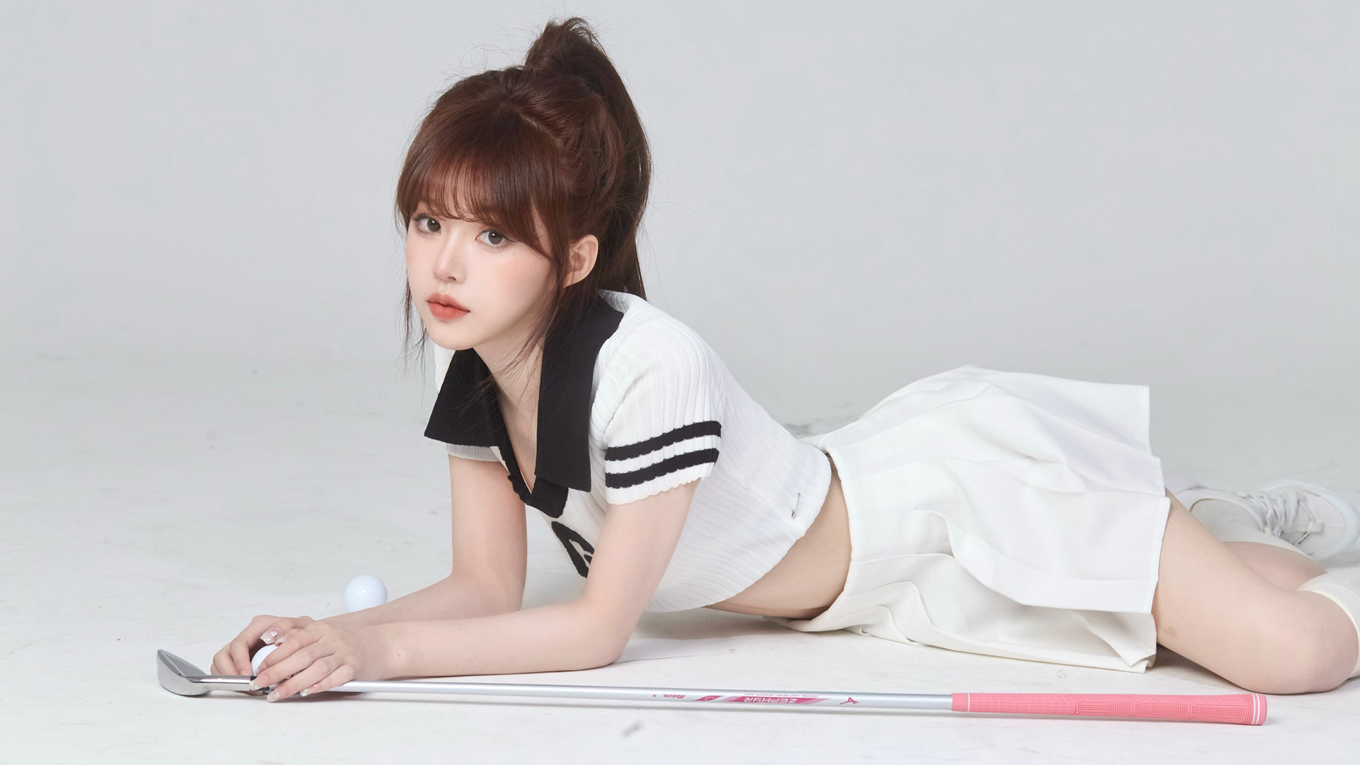 长腿陆萱萱居家沙发写真 白色毛衣配黑短裙美女免费电脑壁纸下载
