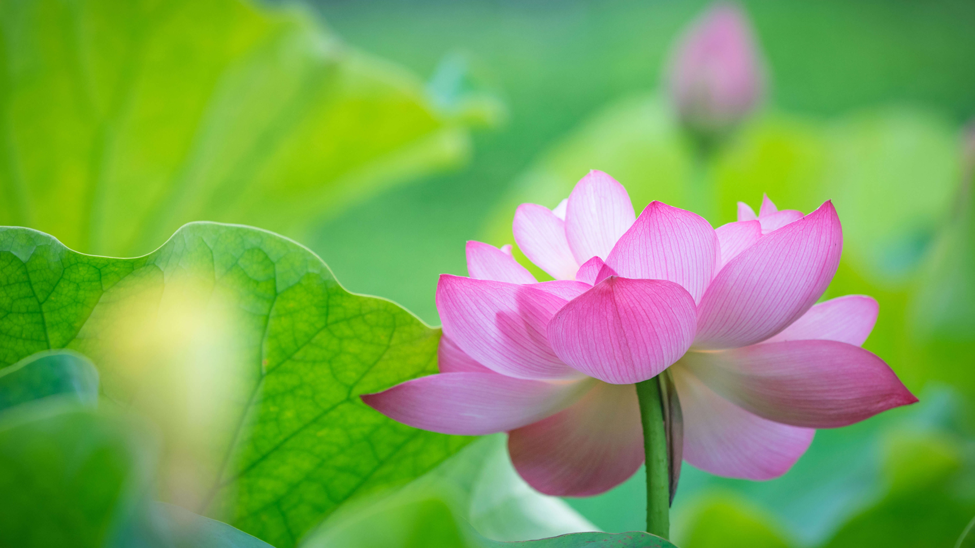 粉色荷花荷叶2k高清免费花卉电脑壁纸下载